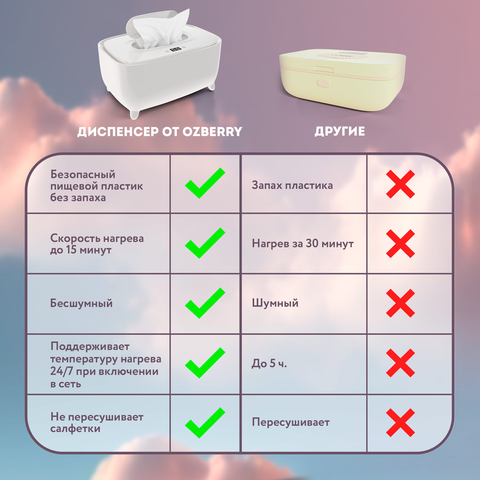 Контейнер с подогревом для влажных салфеток OZBERRY. Нагреватель диспенсер, салфетница для ухода за новорожденным интересное: