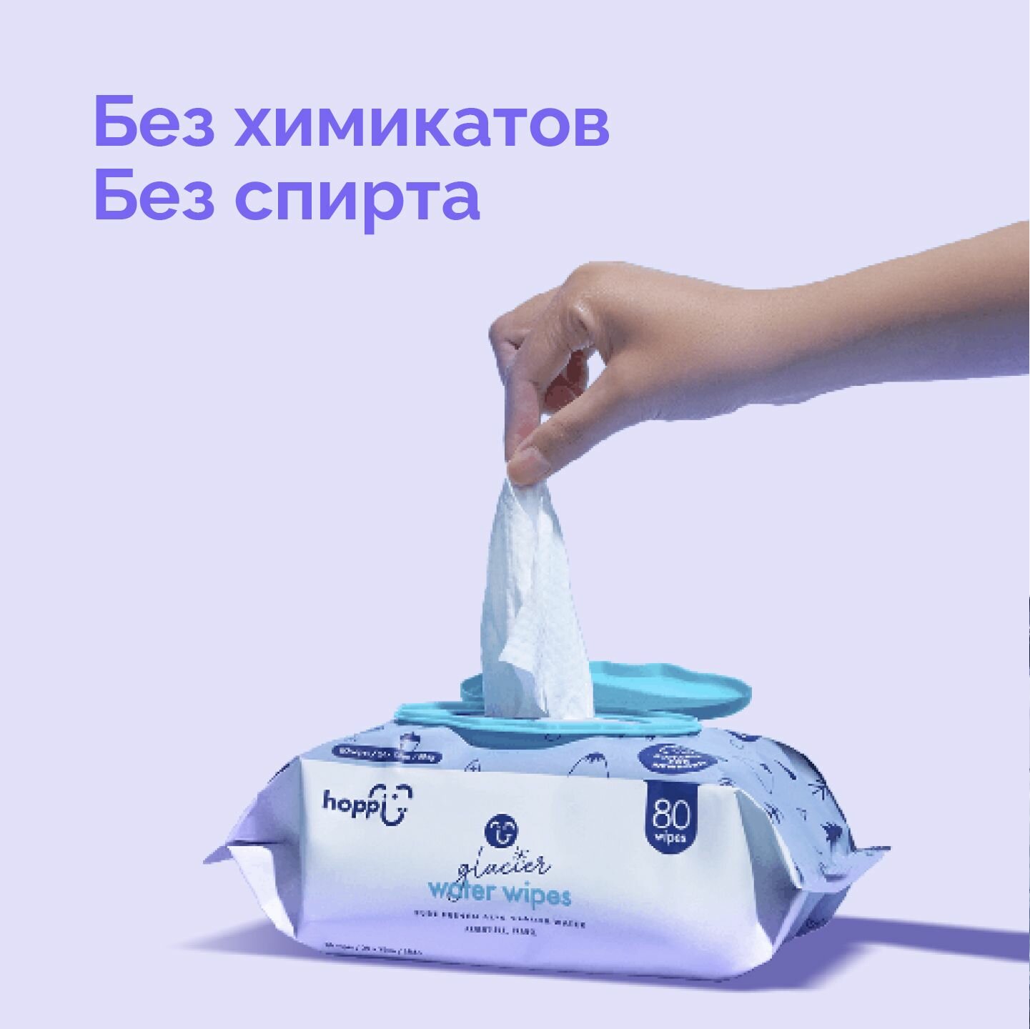 Детские влажные салфетки Hoppi Glacier с клапаном, 2 х 80 шт. (160 штук) интересное: