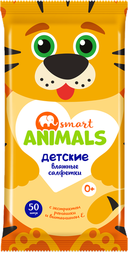 Купить Smart Animals N50 Влажные Детские Салфетки с Ромашкой и Витамином Е 50шт