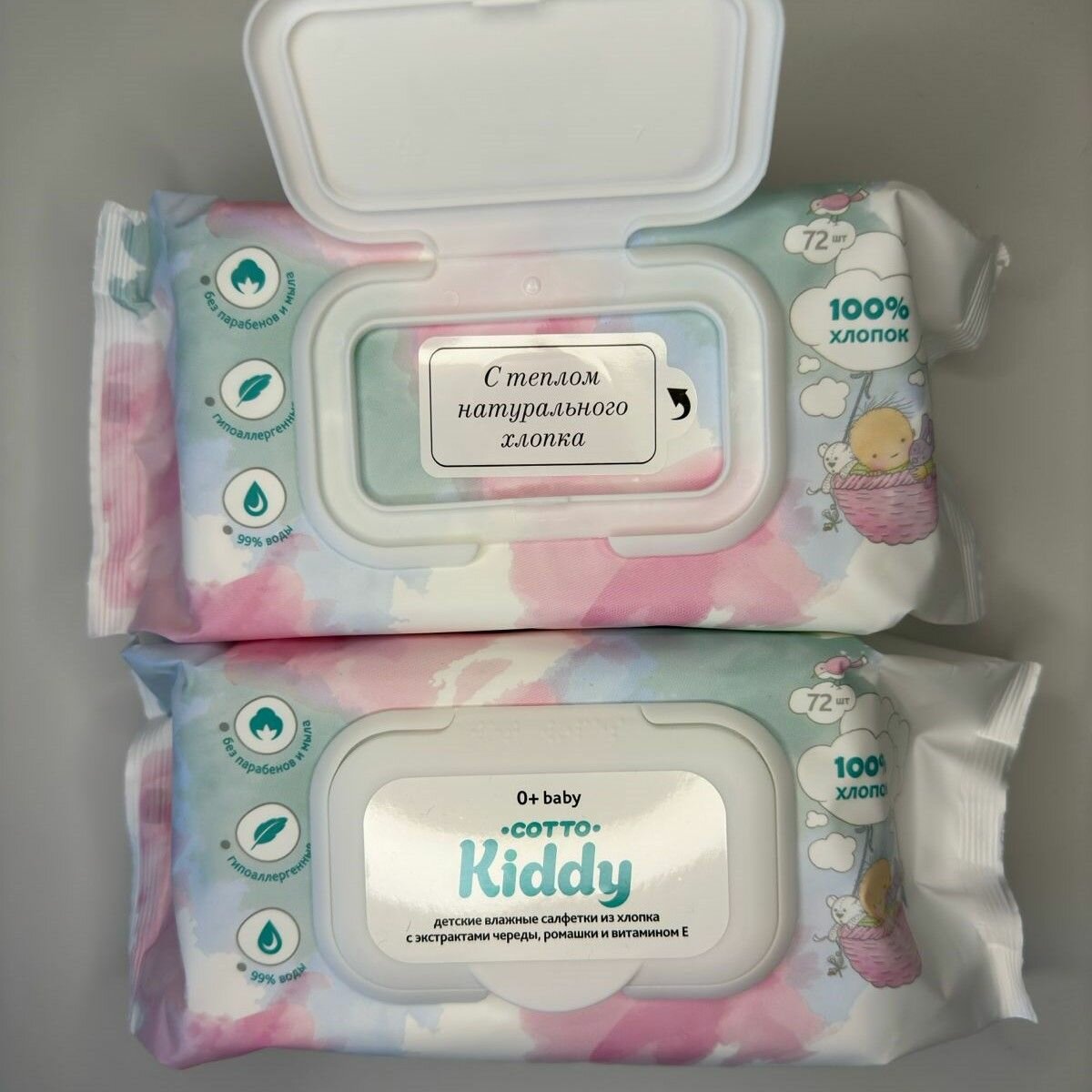 Влажные салфетки детские 0+ с клапаном 144 шт 2х72 интересное: