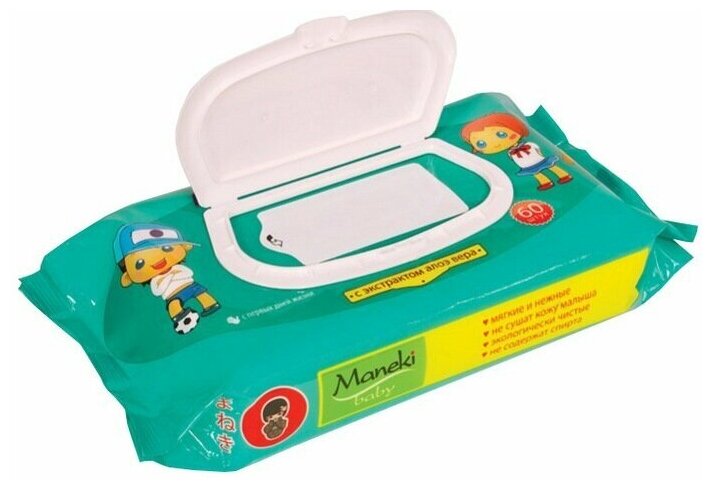 Купить Салфетки влажные Maneki 60 шт детские с экстрактом алоэ