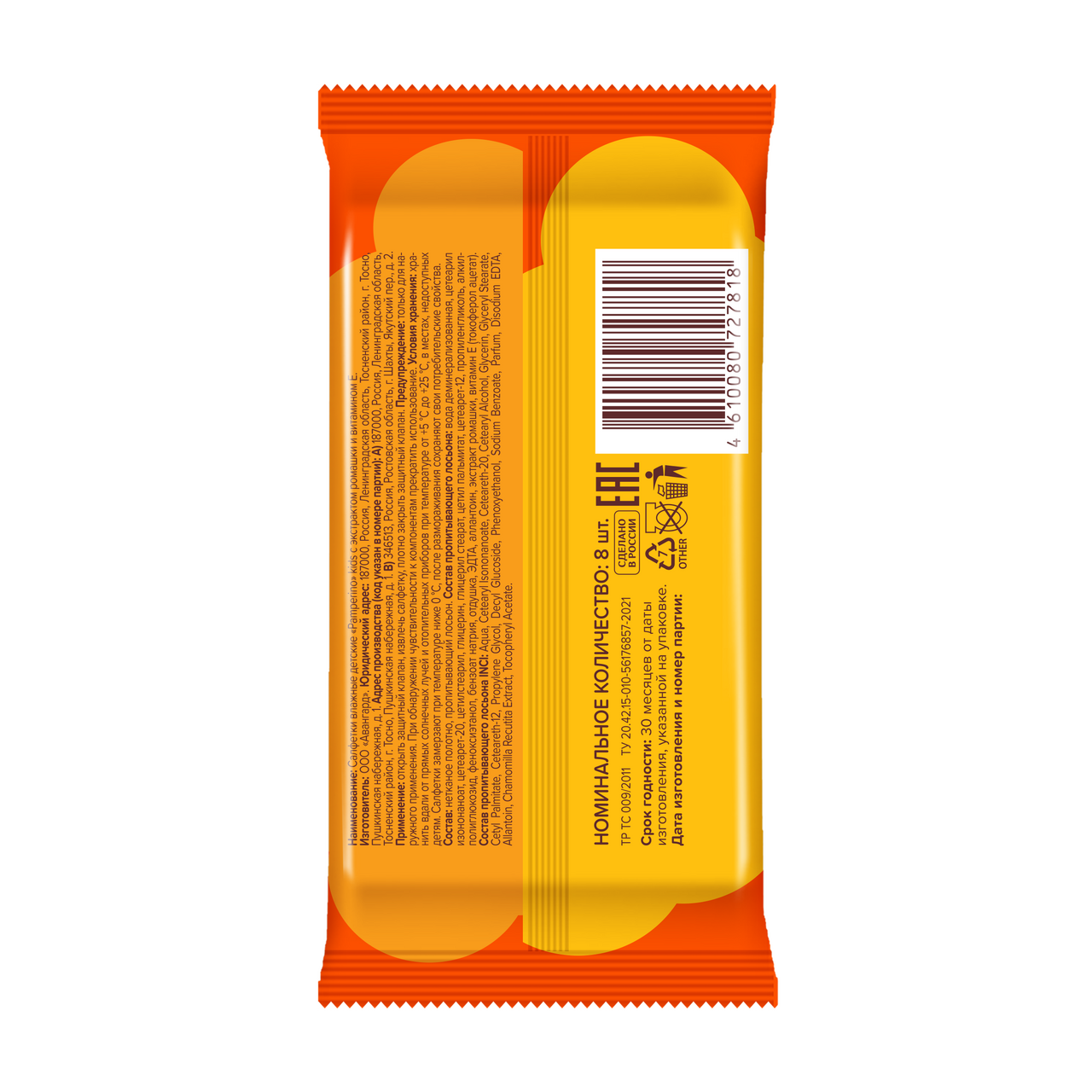 Купить Салфетки влажные детские Pamperino Кидс ромашка и витамин Е 8 шт