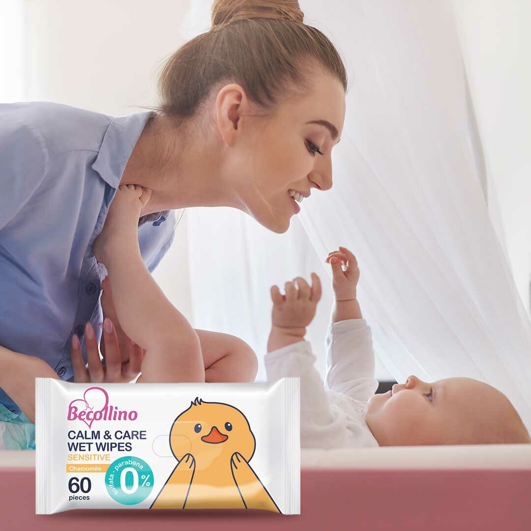 Салфетки влажные детские для гигиены малышей против раздражений Becollino, 60 шт. интересное: