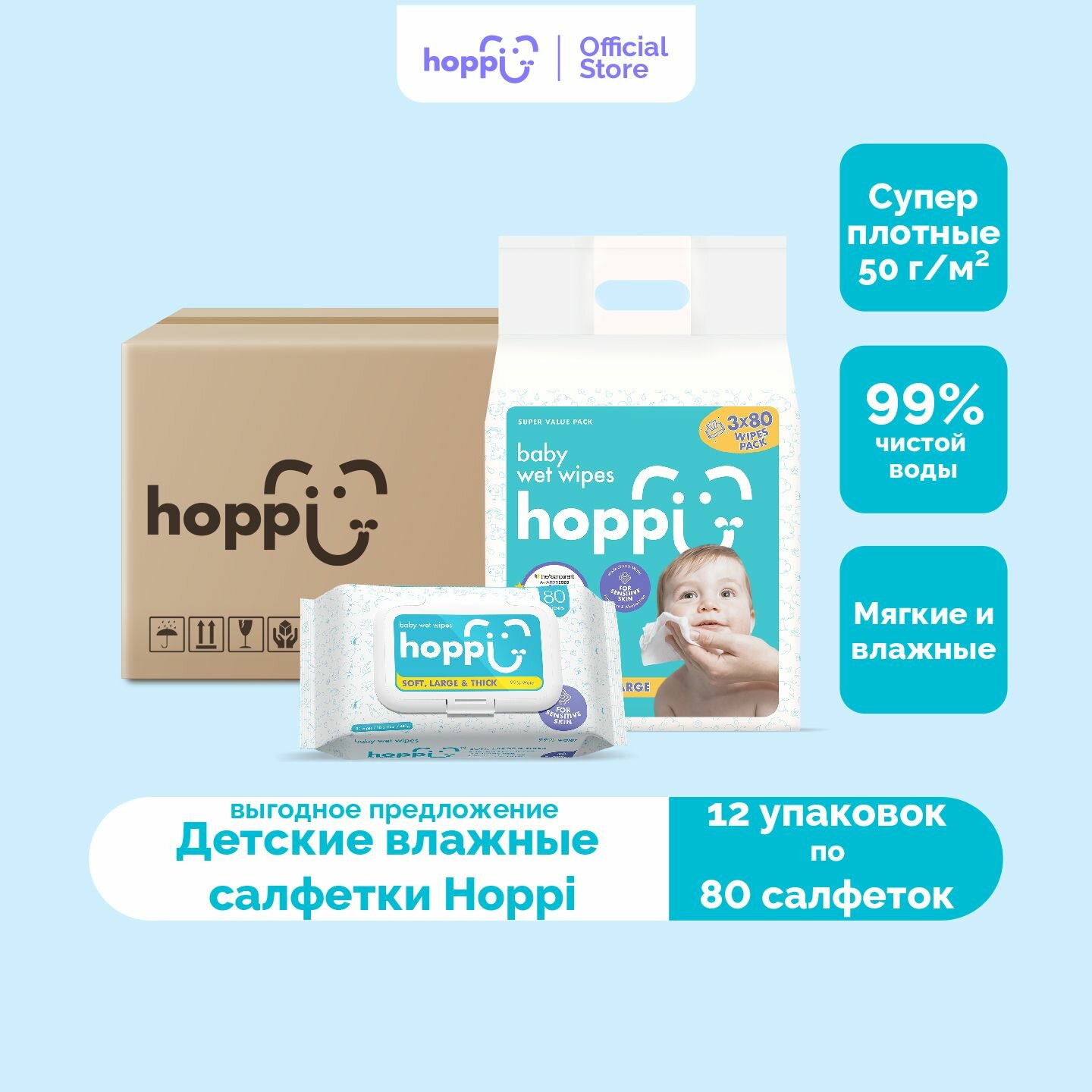 Купить Влажные салфетки детские Hoppi Baby с клапаном, 12х80шт. (960 штук)