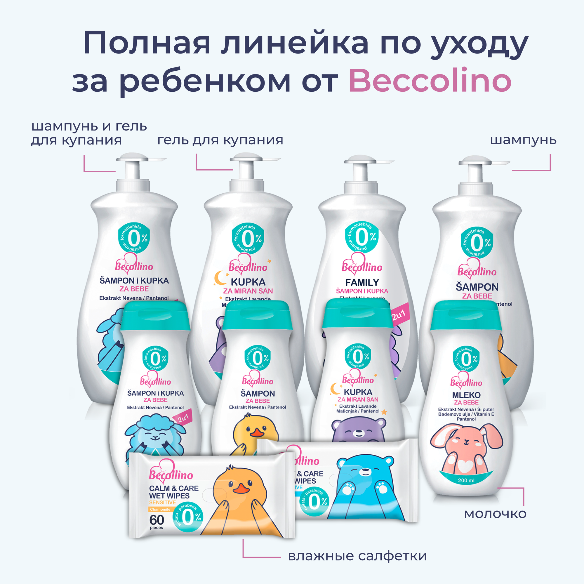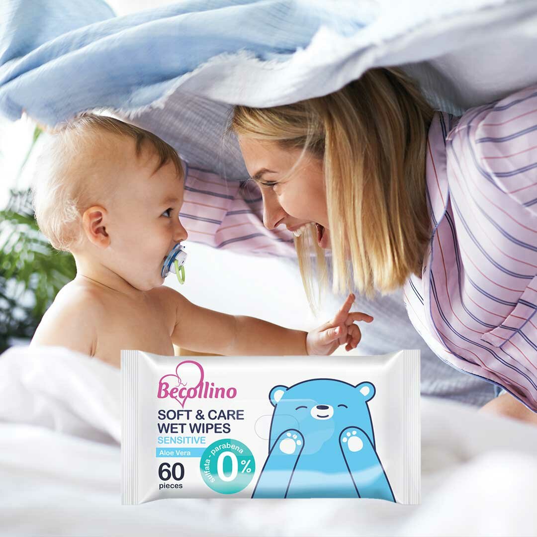 Салфетки влажные детские для гигиены малышей увлажняющие Becollino, 60 шт. интересное: