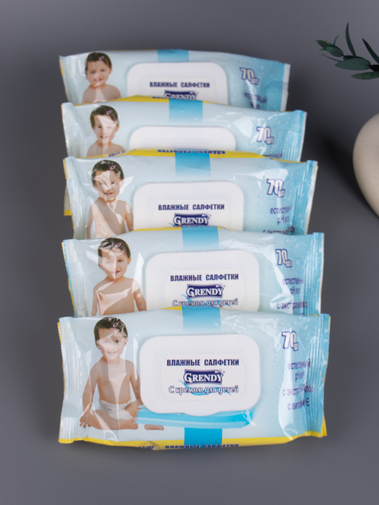 Влажные салфетки Grendy для детей, с кремом, пластик, 5 упаковок по 70 штук в каждой интересное: