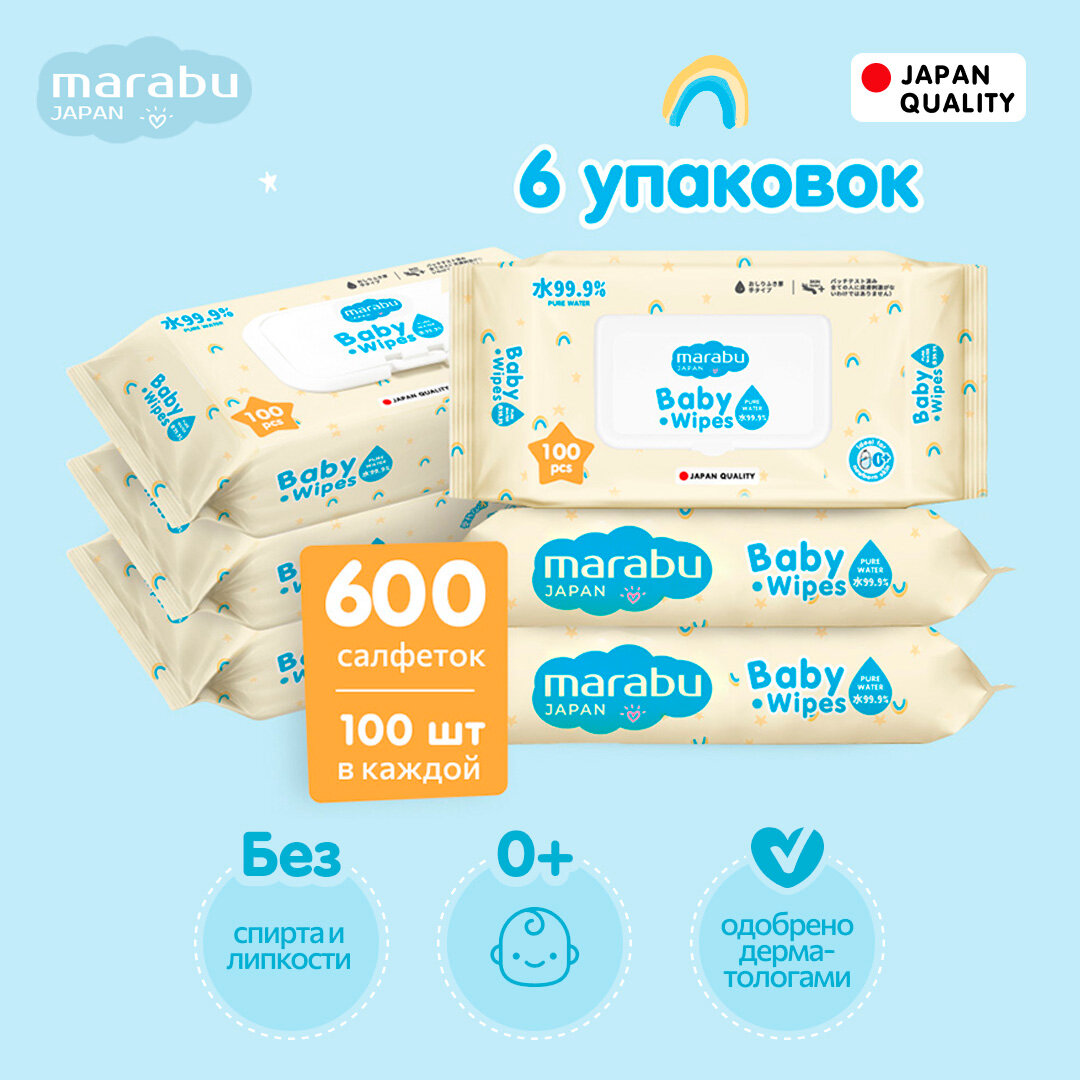 Влажные салфетки для детей MARABU 600 шт набор из 6 упаковок по 100 шт интересное: