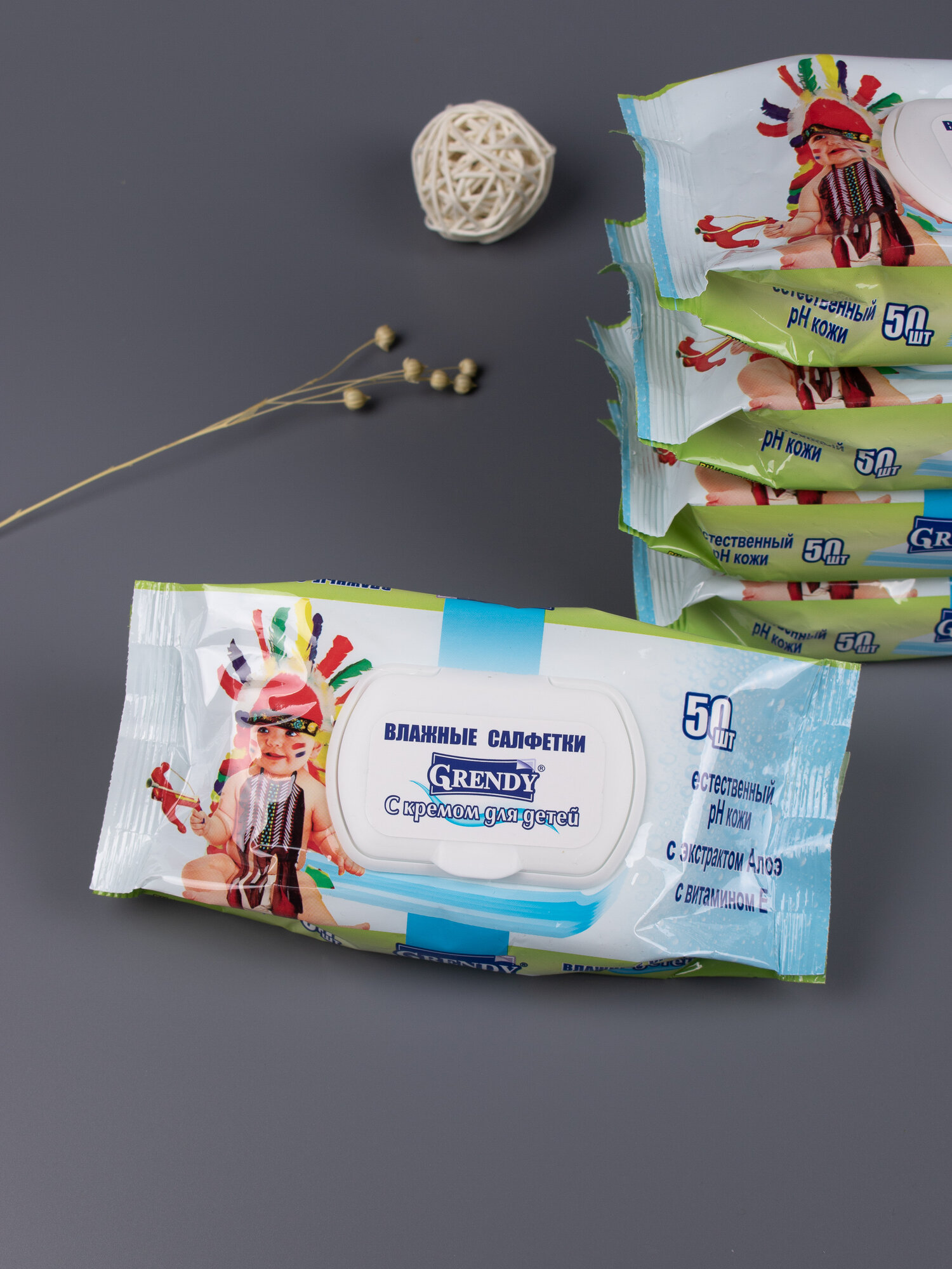 Купить Влажные салфетки Grendy, детские, антибактериальные, с экстрактом алоэ, 5 упаковок