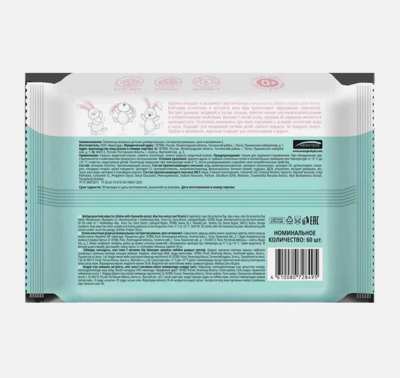 Полотенца детские влажные, очищающие, универсальные, 60шт/уп, 1 упаковка интересное: