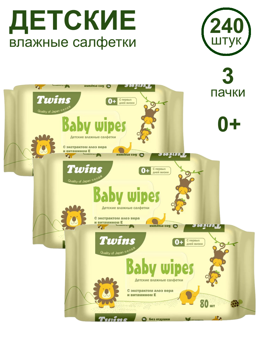 Влажные салфетки детские 0+ TWINS 240 шт (80х3) интересное: