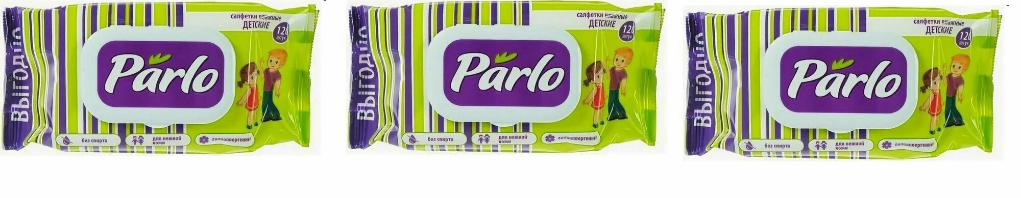 Купить Parlo Влажные салфетки для детей, с крышкой, 120 штук в упаковке, 3 упаковки