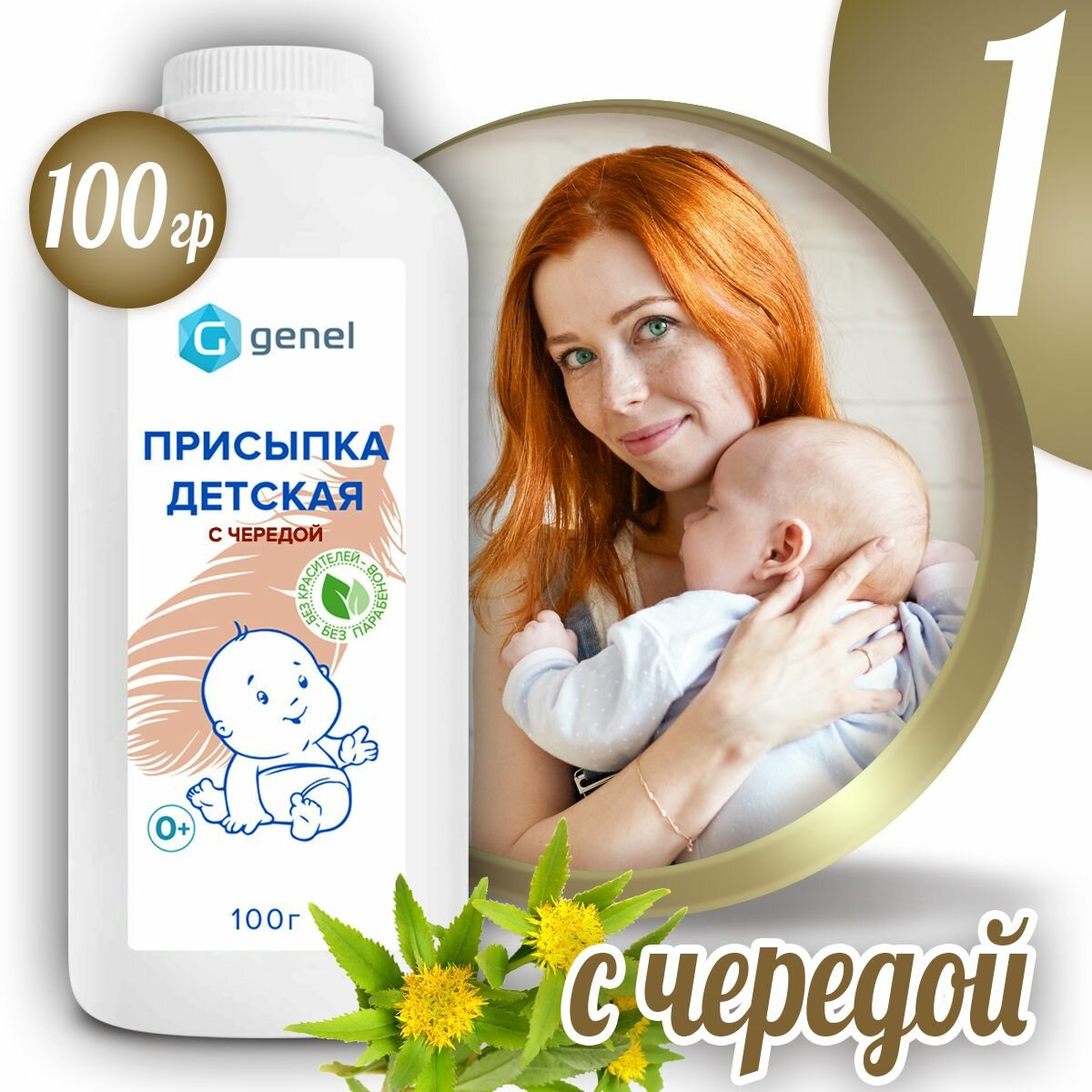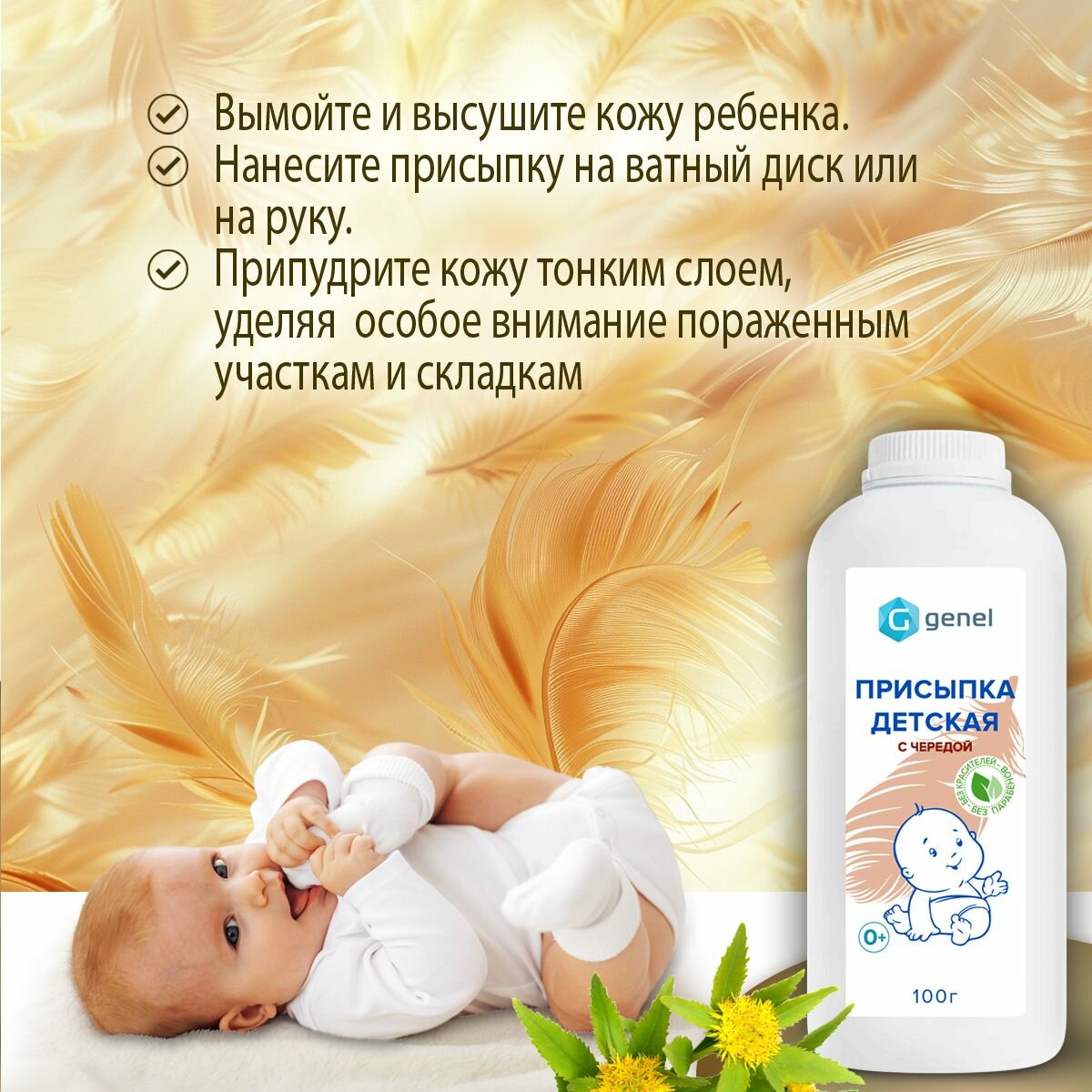 Купить Присыпка для детей, гипоаллергенная, с чередой, антибактериальная, 100г