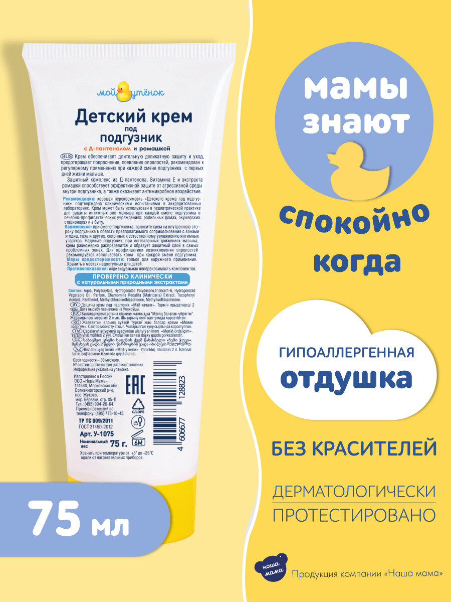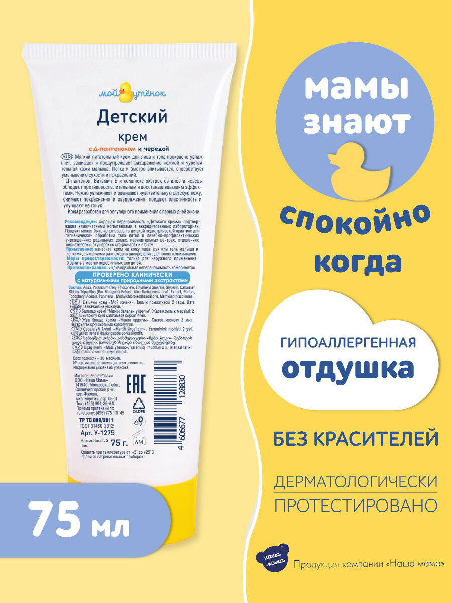 Мой Утенок Набор для новорожденных, Детский крем под подгузник 75мл; Детский увлажняющий крем 75мл, гипоаллергенно, 0+ интересное: