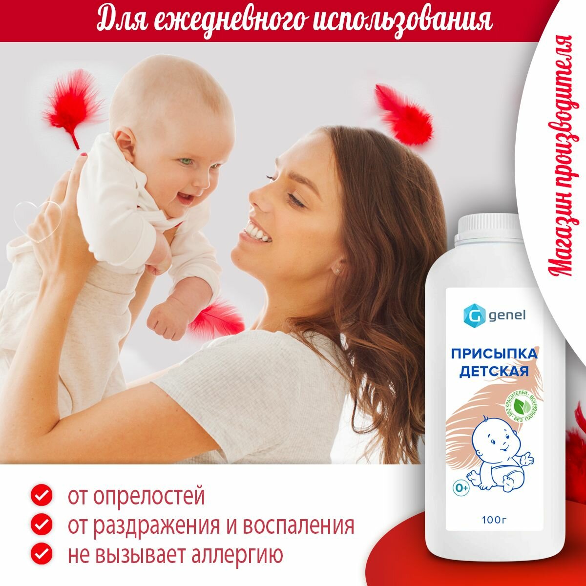 Детская присыпка Genel, для новорожденных, гипоаллергенная, 100г интересное: