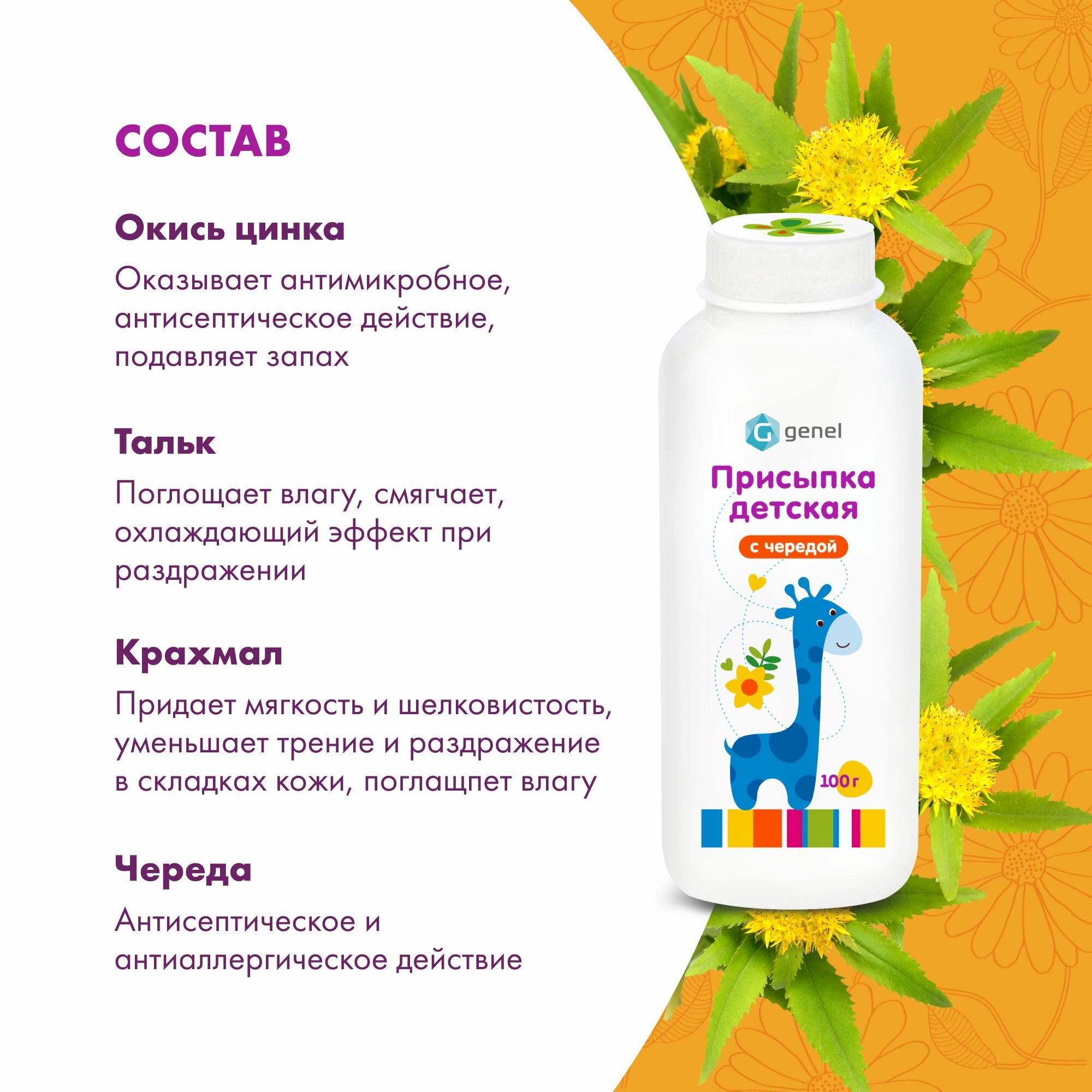 Присыпка детская для новорожденных с чередой GENEL 100 г, 0+ интересное:
