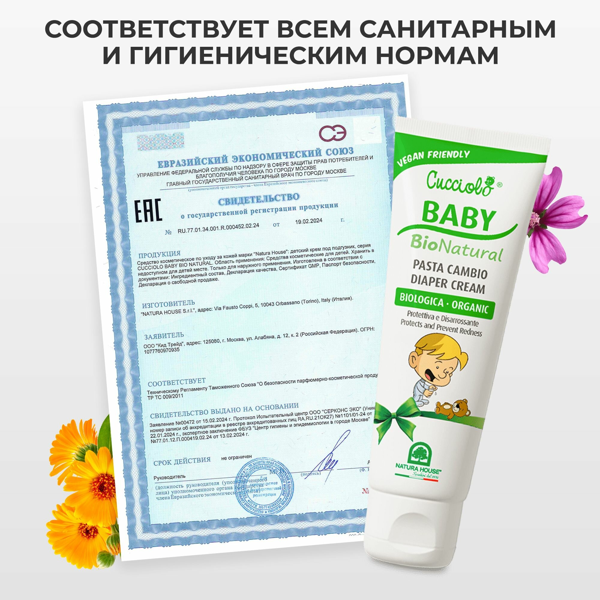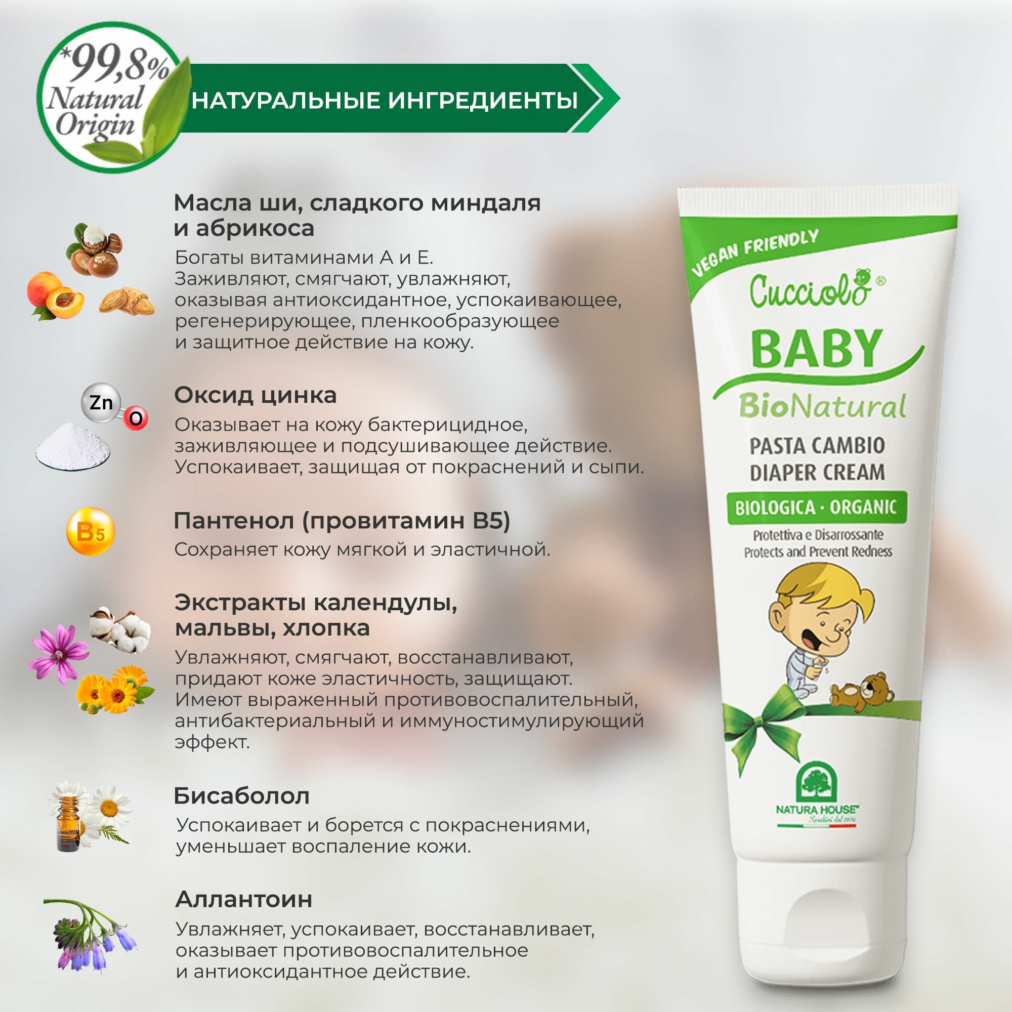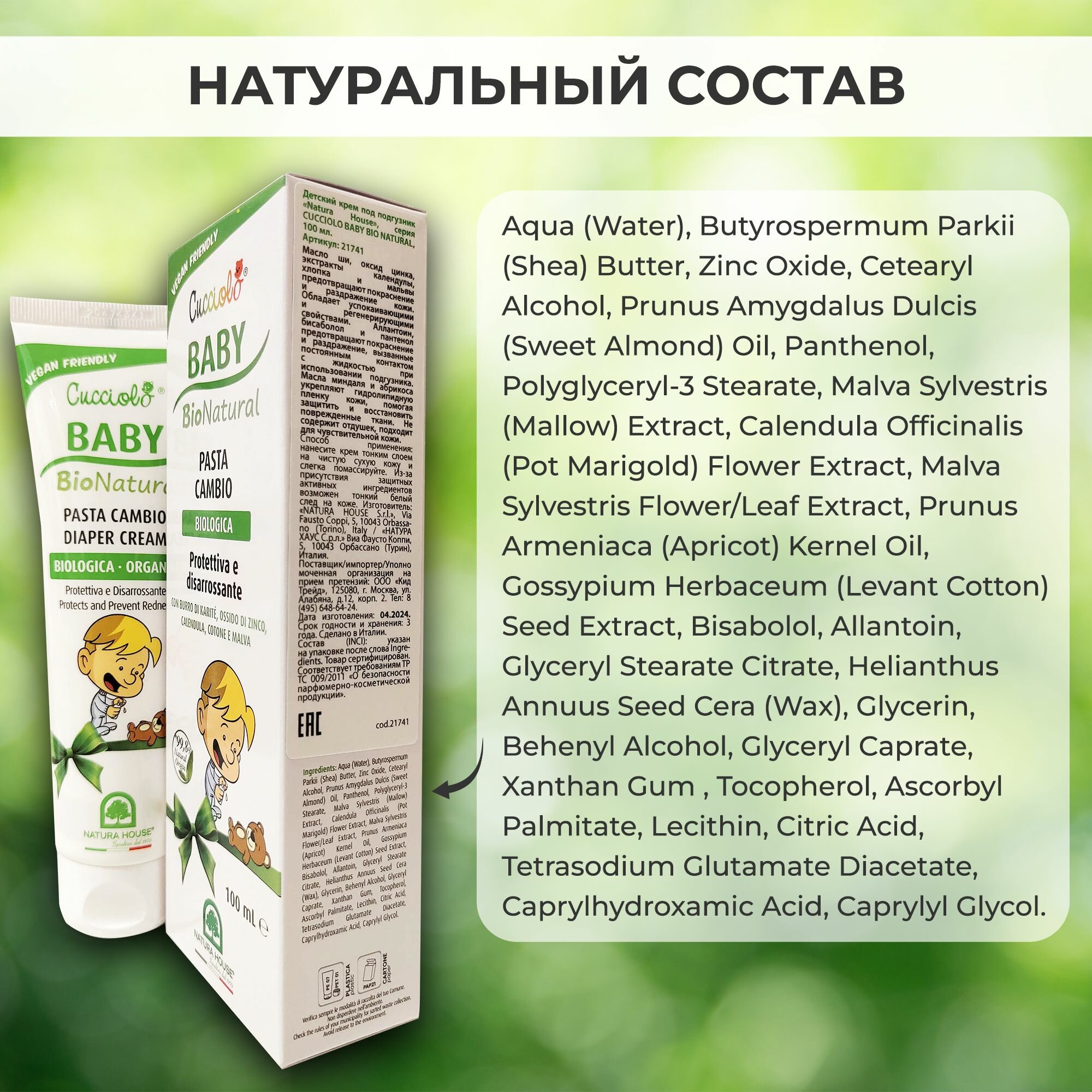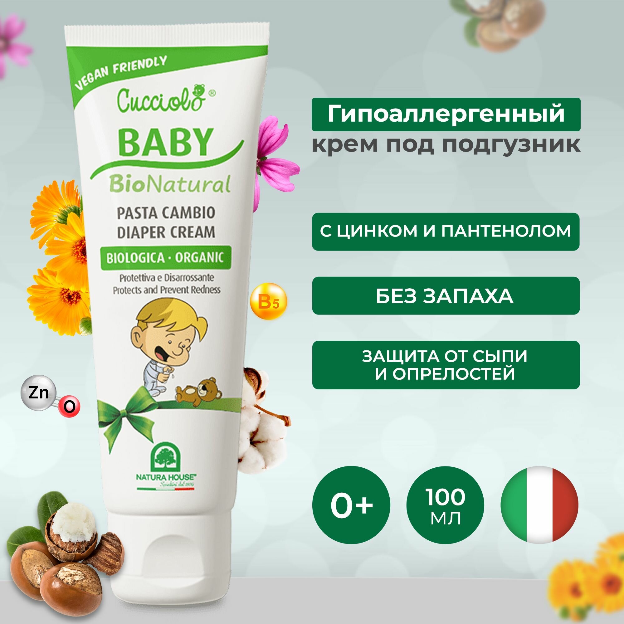 Детский крем под подгузник CUCCIOLO BABY BIO NATURAL Natura House с оксидом цинка, для новорожденных, 100 мл интересное: