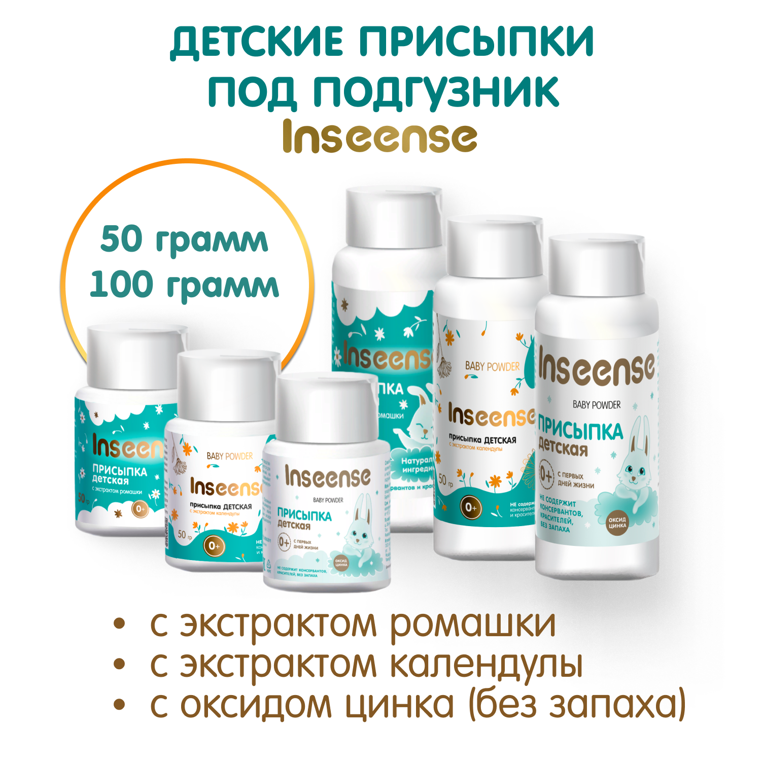 Купить Присыпка детская Inseense с ромашкой и календулой 2 шт по 50 г