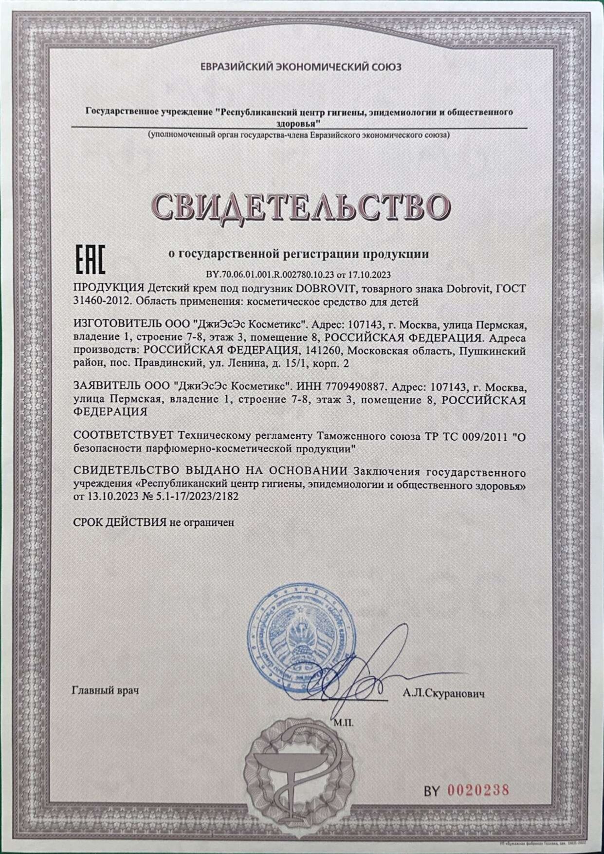 DOBROVIT Крем под подгузник с пантенолом для ухода за кожей младенца, от прелостей и покраснений, 100 мл интересное: