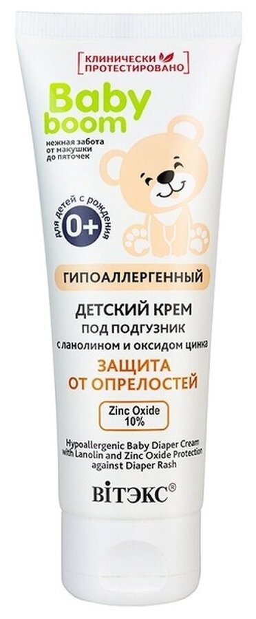 Витэкс BABY BOOM гипоаллергенный детский крем под подгузник с ланолином и оксидом цинка защита от опрелостей 75 мл. интересное: