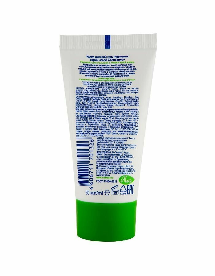 Мое солнышко Крем детский под подгузник, 50 мл, 12 шт интересное: