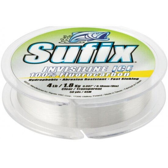 Леска зимняя SUFIX Invisiline Ice Fluorocarbon прозрачная 50м 0,18мм/2,5кг