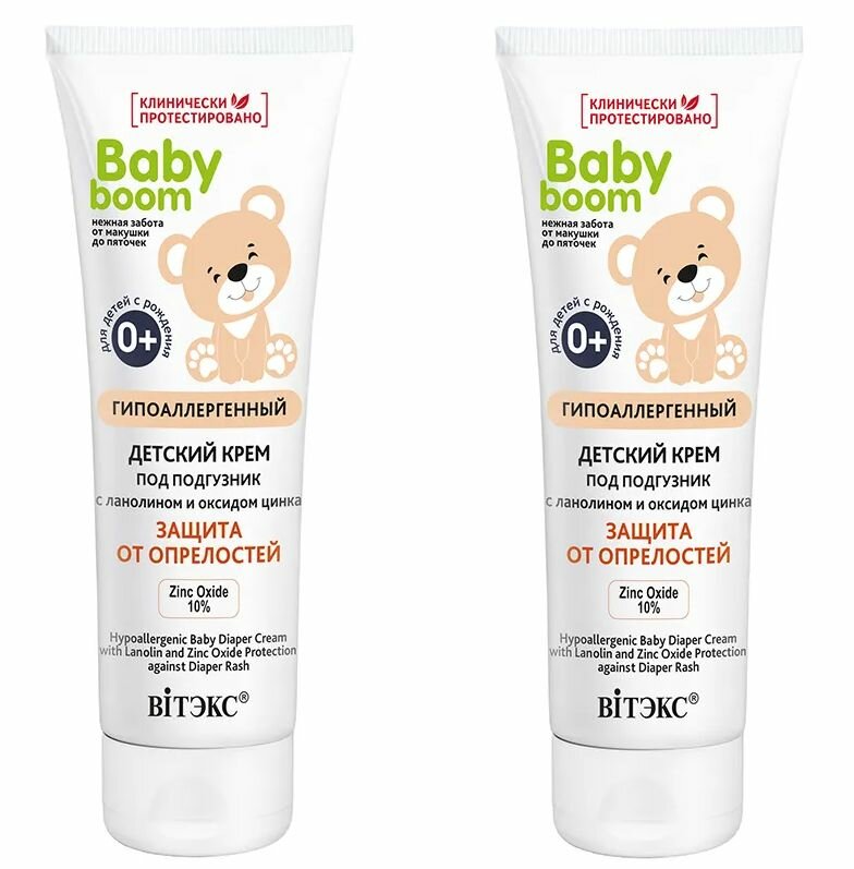 Витэкс Детский крем под подгузник Baby boom, Защита от опрелостей, гиппоаллергенный, 75 мл, 2 уп. интересное: