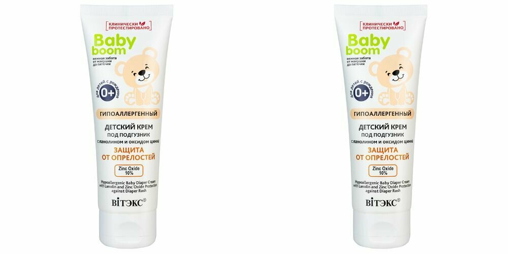 Витэкс Крем под подгузник гипоаллергенный BABY BOOM, защита от опрелости, 75 мл, 2 уп интересное: