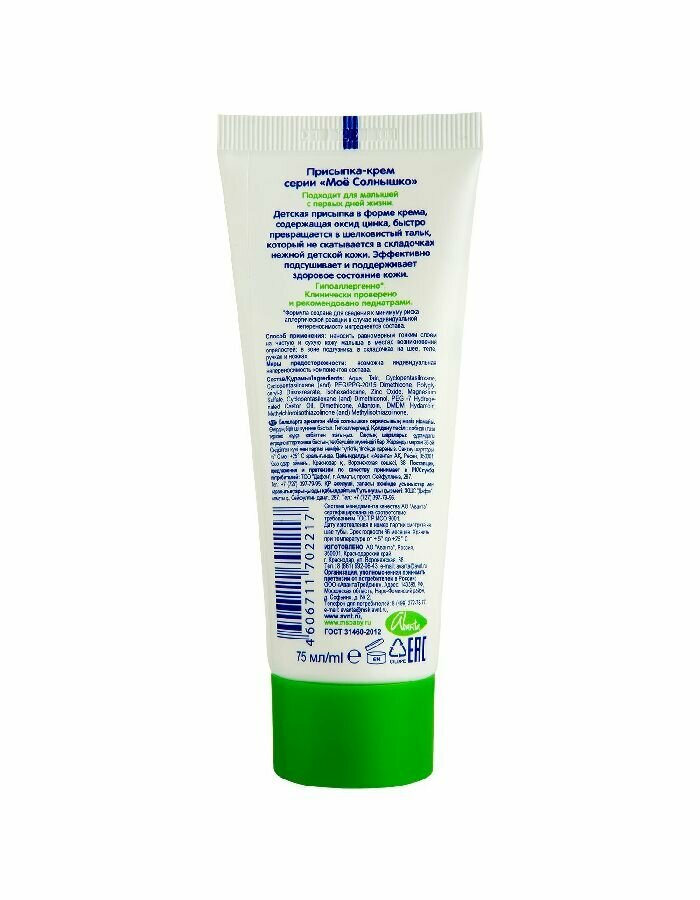 Моё солнышко Присыпка-крем от опрелостей, 75 мл, 10 шт интересное: