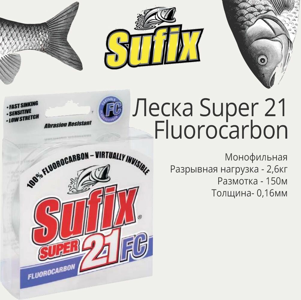 Леска SUFIX Super 21 Fluorocarbon прозрачная 150м 0.16мм 2.6кг