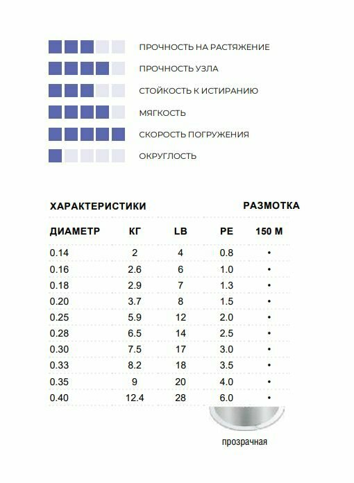 | Плюсы: | Действительно почти не заметен в воде, хорошая разрывная нагрузка |