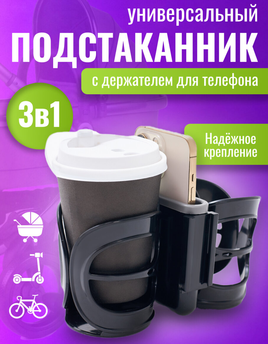 Купить Подстаканник 3 в 1 для коляски с держателем и подставкой для телефона