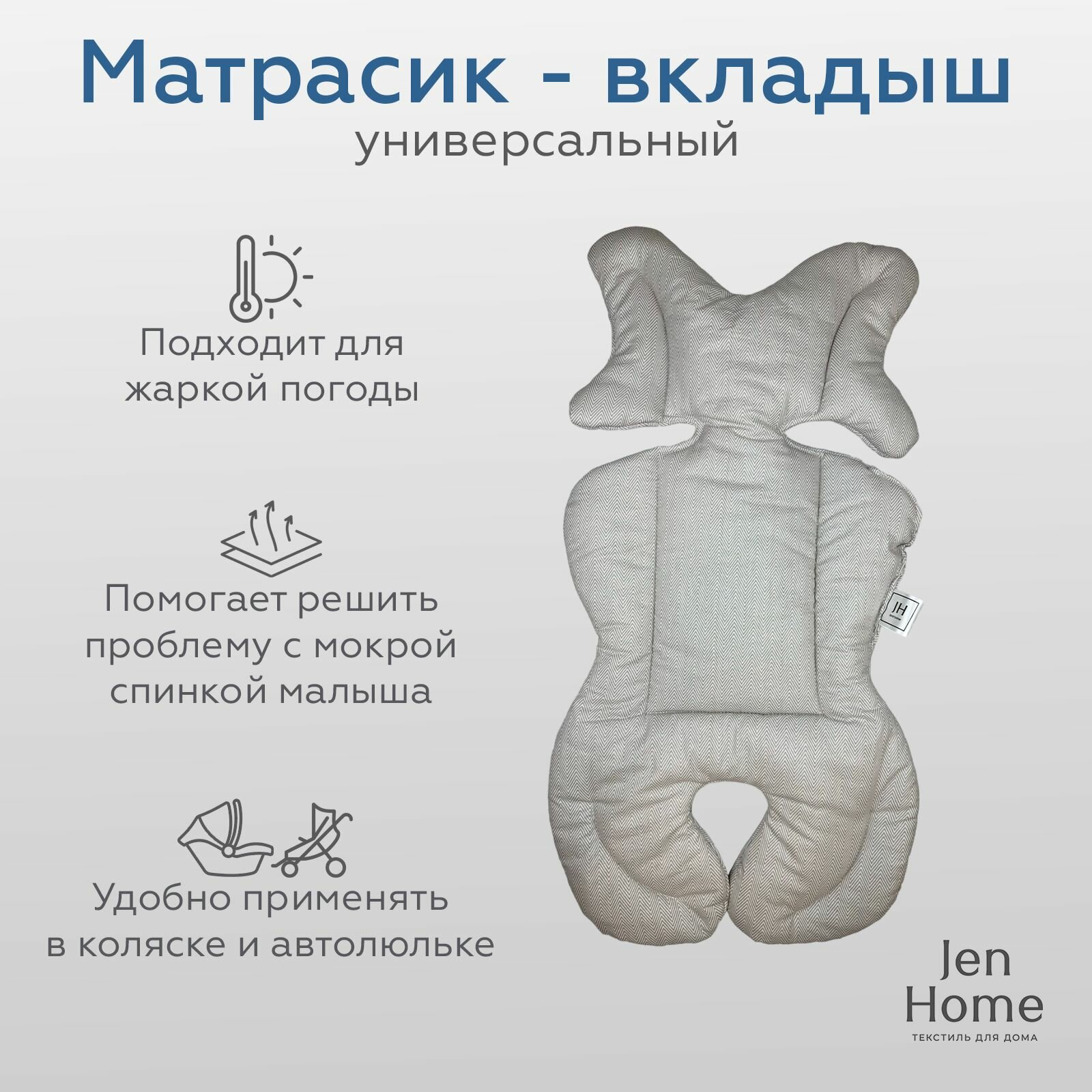 Универсальный матрас в коляску или автокресло 40х77, принт "Белые звезды на сером"