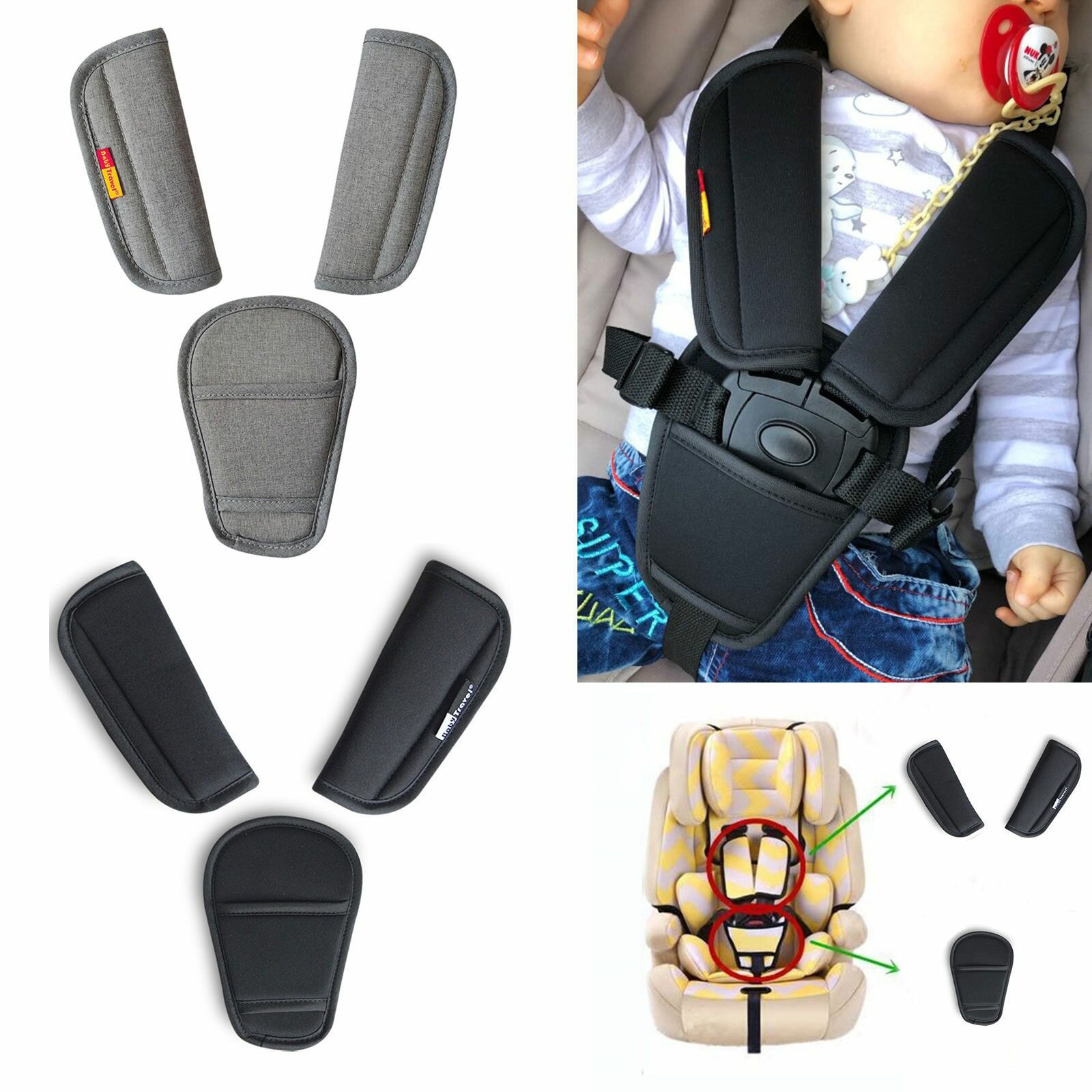 Комплект из 3 предметов, плечевые накладки для ремней безопасности детской коляски из трех частей-льняно-серый интересное: