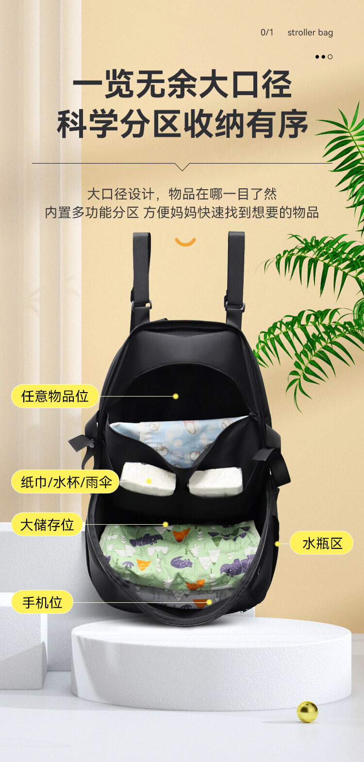 Сумка для коляски Godmy, бежевая, ткань Оксфорд, многофункциональная