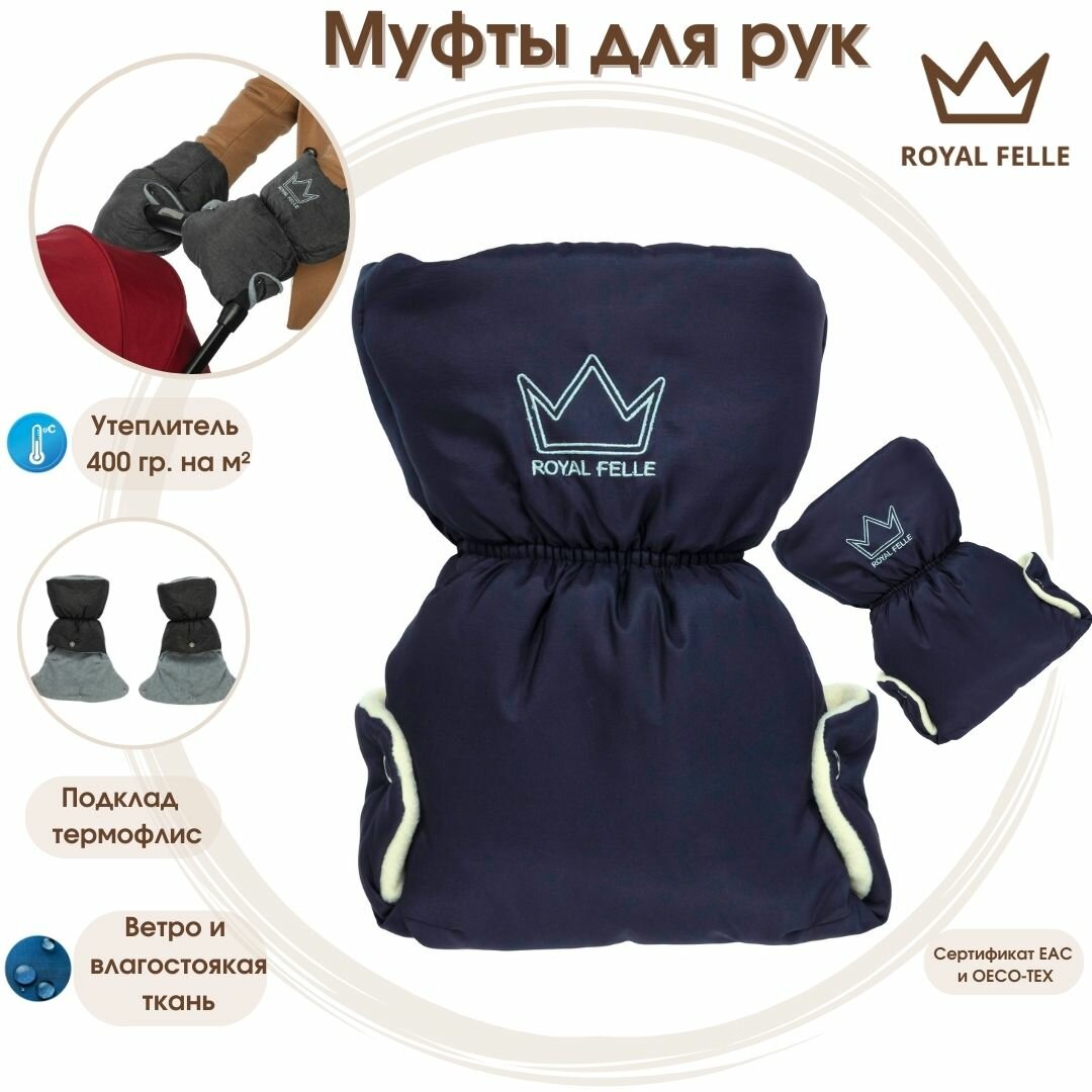 Муфта, ROYAL FELLE, Comfort для рук на коляску, флисовая, теплая, на кнопках, синий цвет