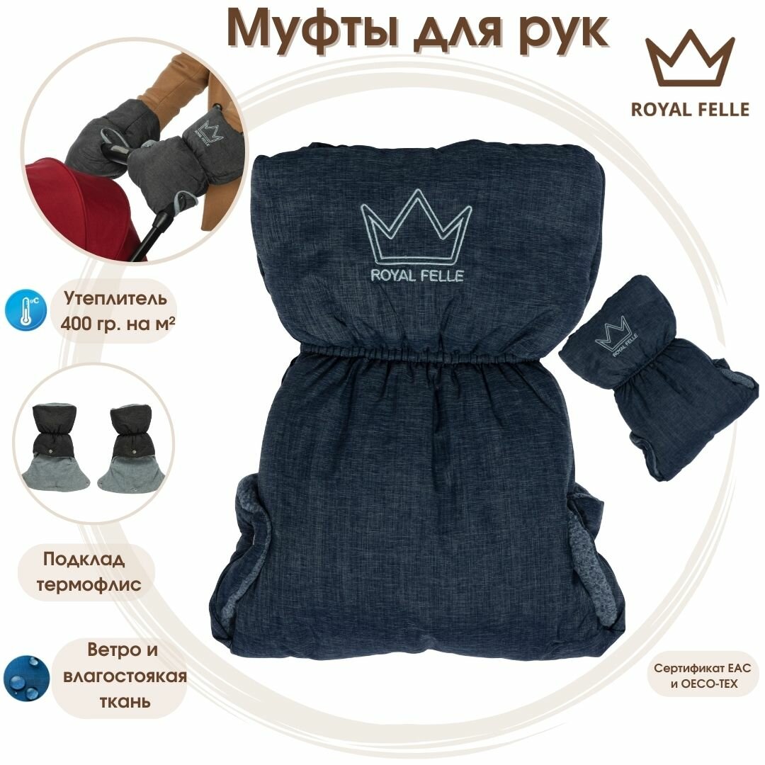 Купить Муфты-варежки для рук на коляску, флисовые - Royal Felle - Blue Melange