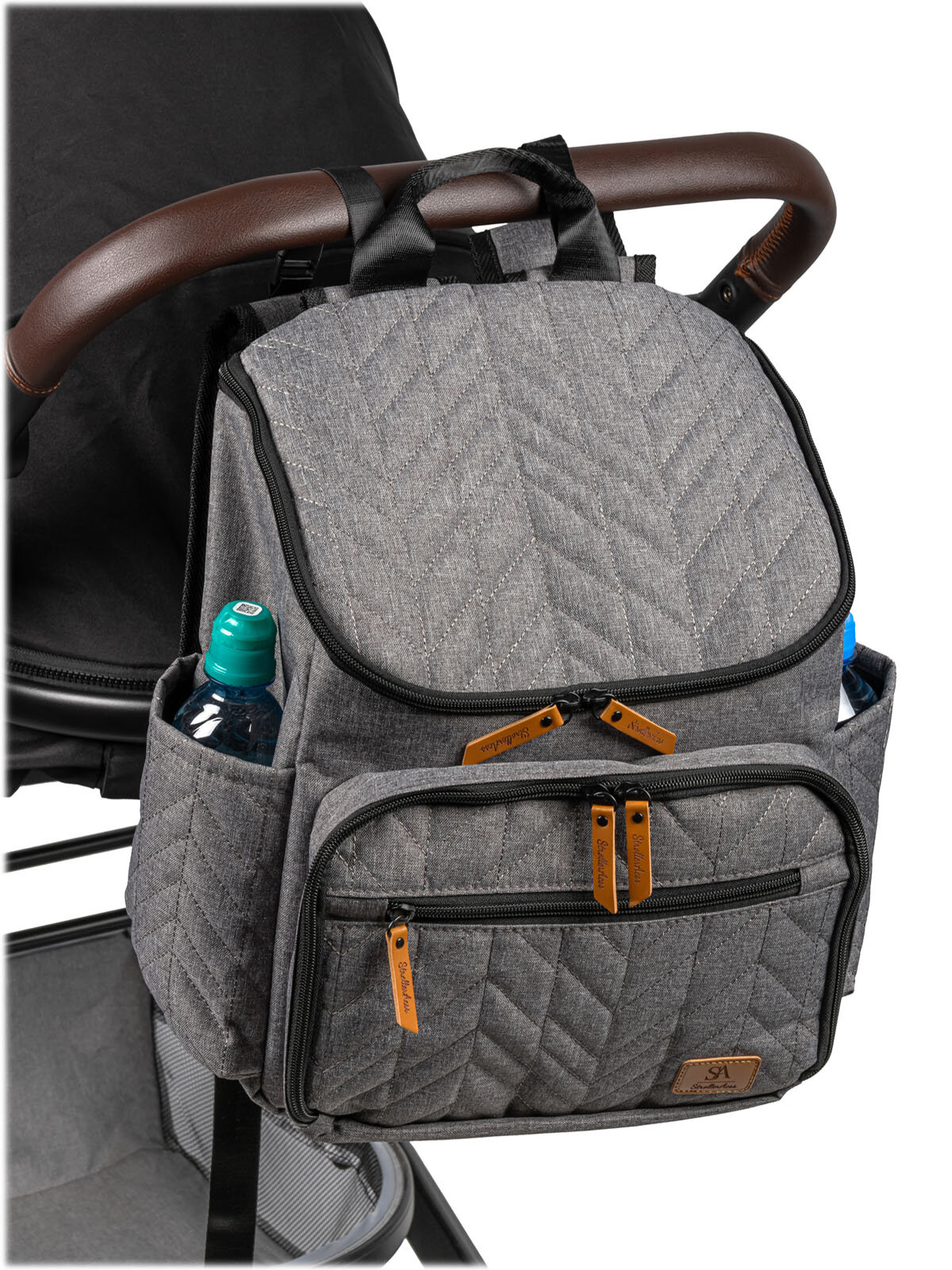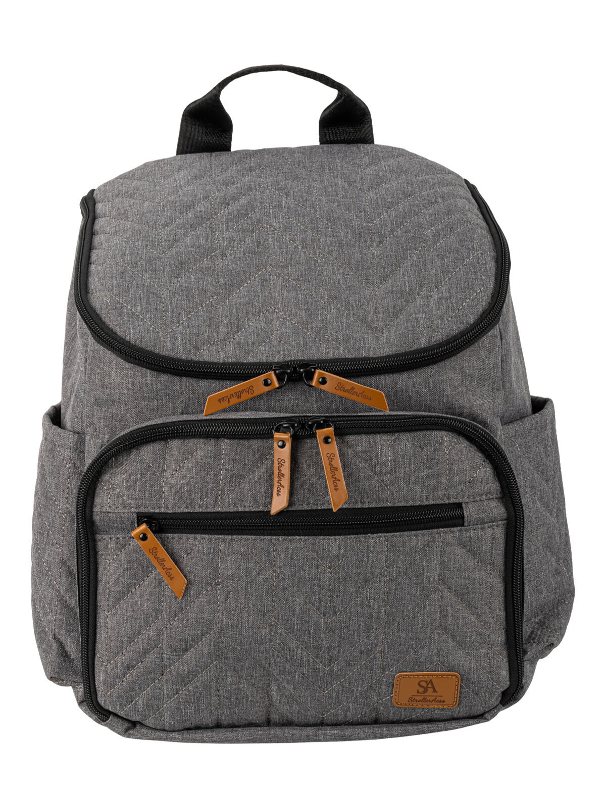 Купить Рюкзак StrollerAcss Для мамы и коляски, водоотталкивающий, серый, 11 карманов