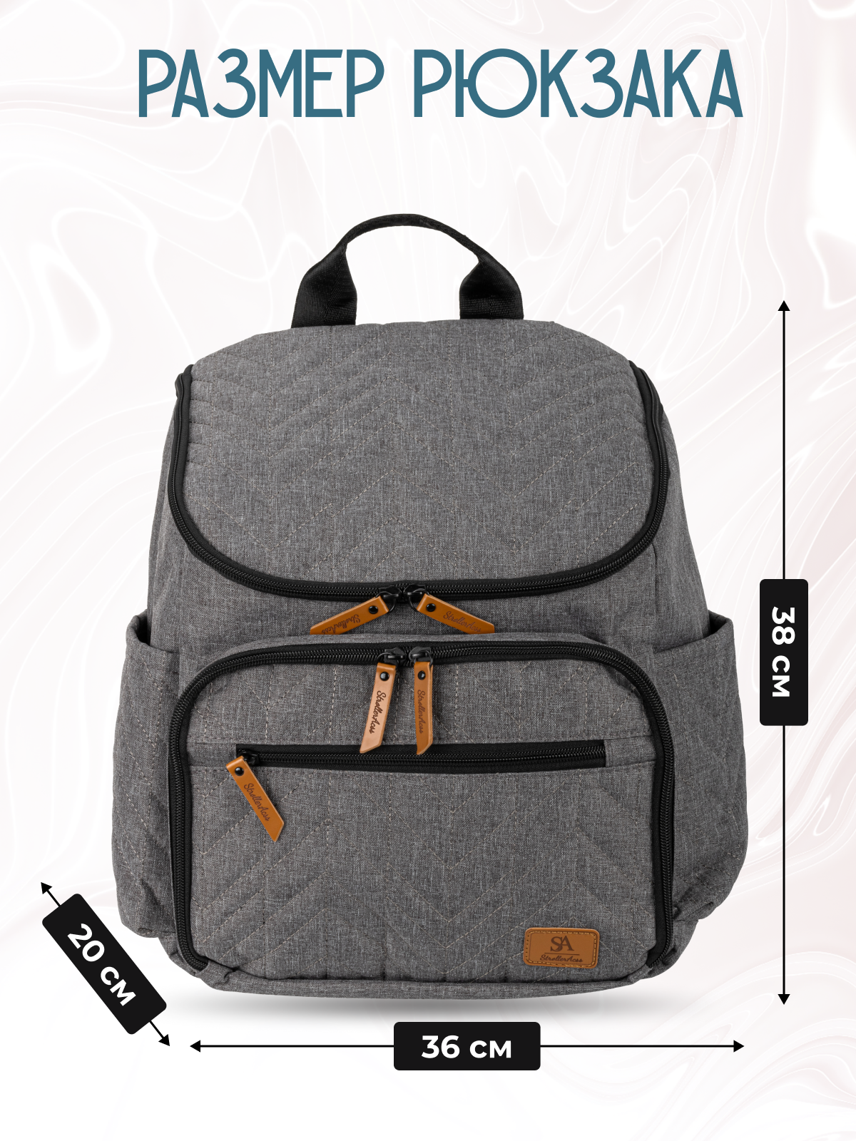 Рюкзак StrollerAcss Для мамы и коляски, водоотталкивающий, серый, 11 карманов интересное: