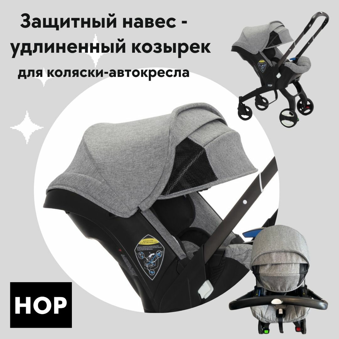 Защитный навес-удлиненный козырек для коляски-автокресла - Grey (серый) интересное: