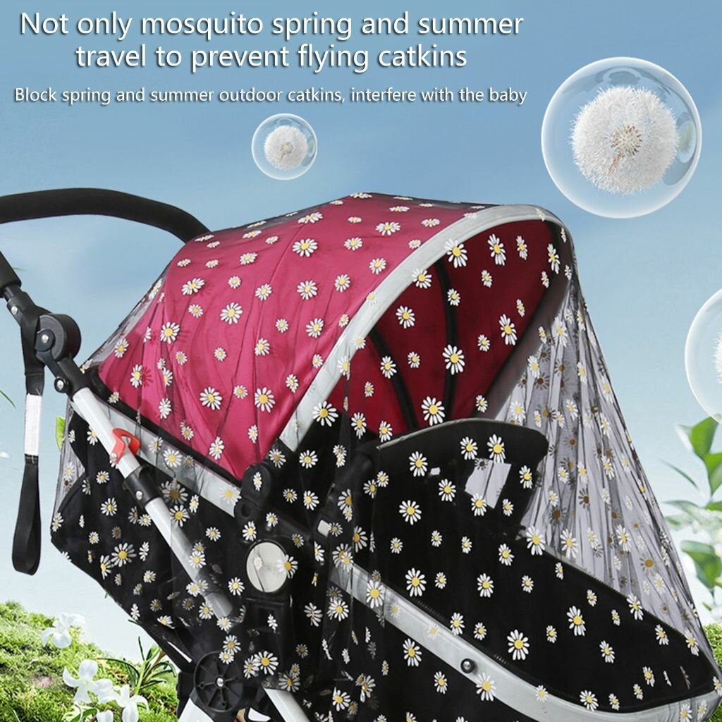 Купить Аксессуары для колясок, Коляска с вышивкой ромашек и москитной сеткой - черные мелкие ромашки