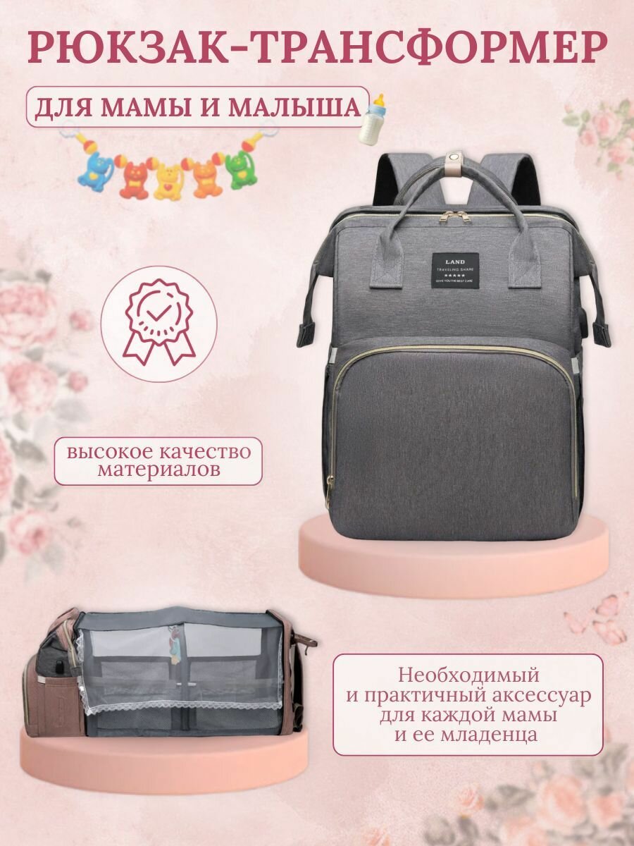 Рюкзак трансформер кроватка люлька для мамы и малыша Премиум качество Серый интересное: