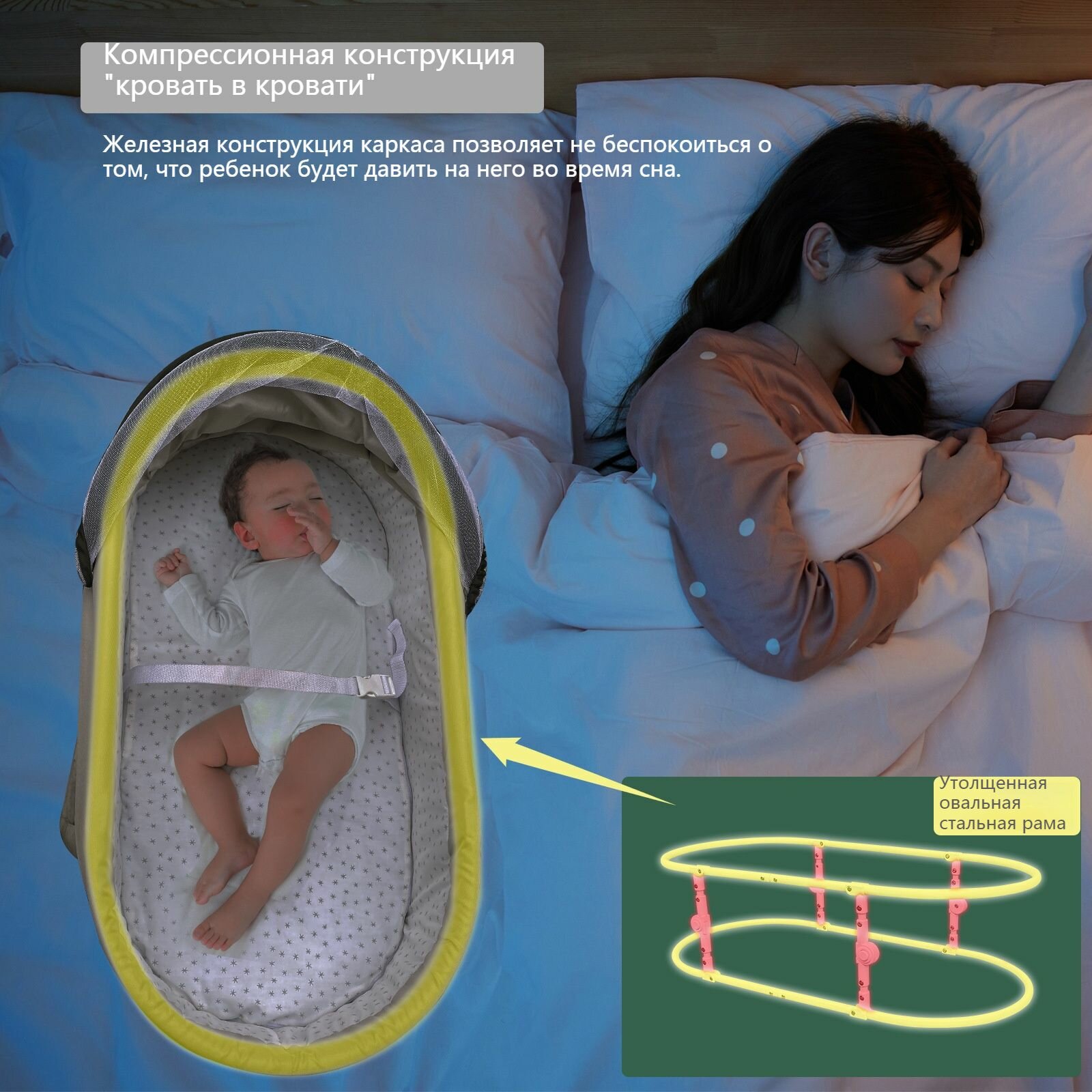 Люлька кроватка для новорожденных складная с москитной сеткой переносная детская для пеленания, переноска в дороге -J интересное: