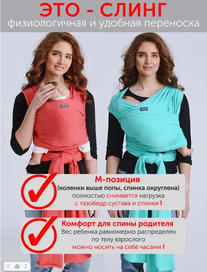 Слинг-шарф трикотажный Diva Milano Prince`s, Mentol - 0+ с рождения (для новорожденных), как эрго-рюкзак (не кенгуру) интересное: