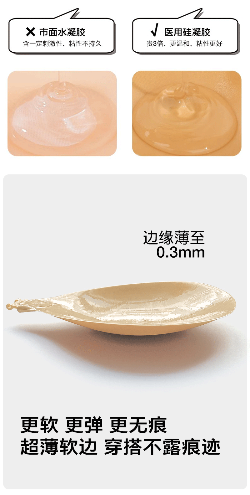 Пластырь для груди, с рельефной нижней частью, шампанское, размер A