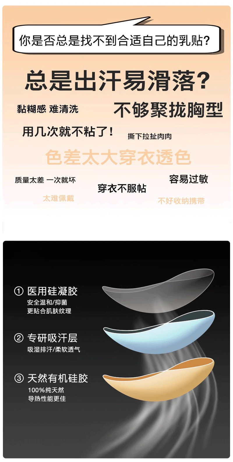 Пластырь для груди, силиконовый, фиксирующий, смуглый, размер B