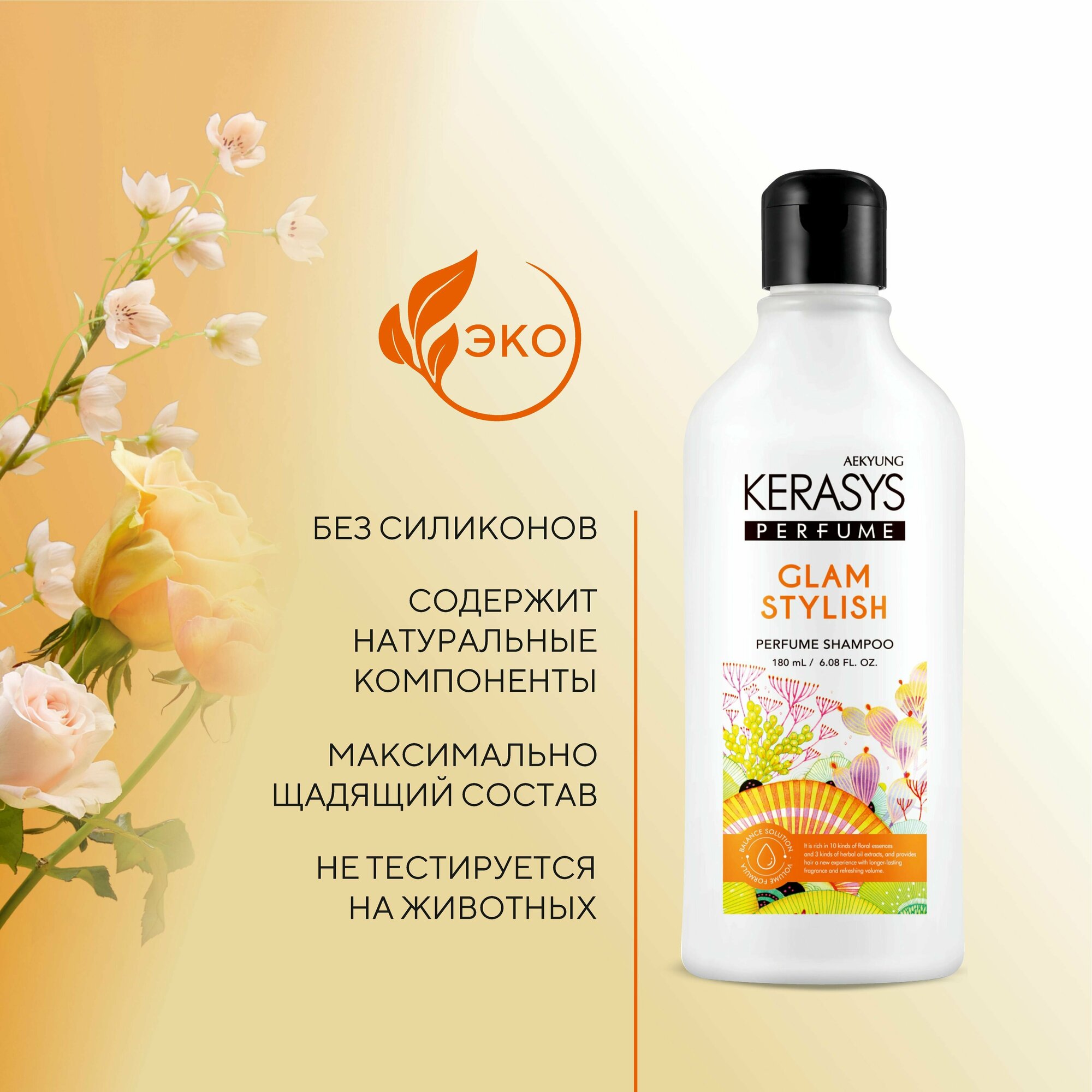 Kerasys Шампунь для волос увлажняющий с коллагеном 180 мл, корейский парфюмированный для всех типов волос, Гламур, бессиликоновый, Корея интересное: