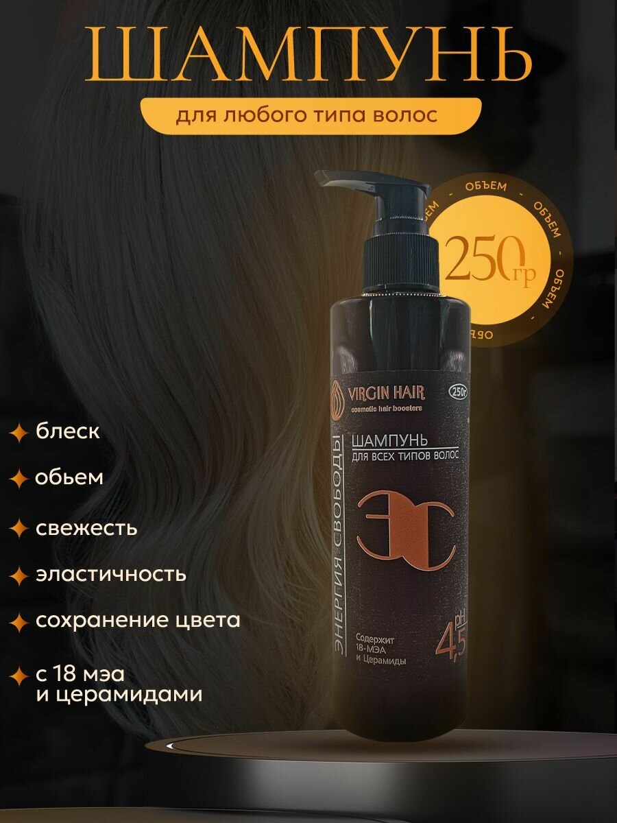 Купить VIRGIN HAIR Шампунь для волос "Энергия свободы" увлажняющий и восстанавливающий с протеинами и церамидами, 250 гр