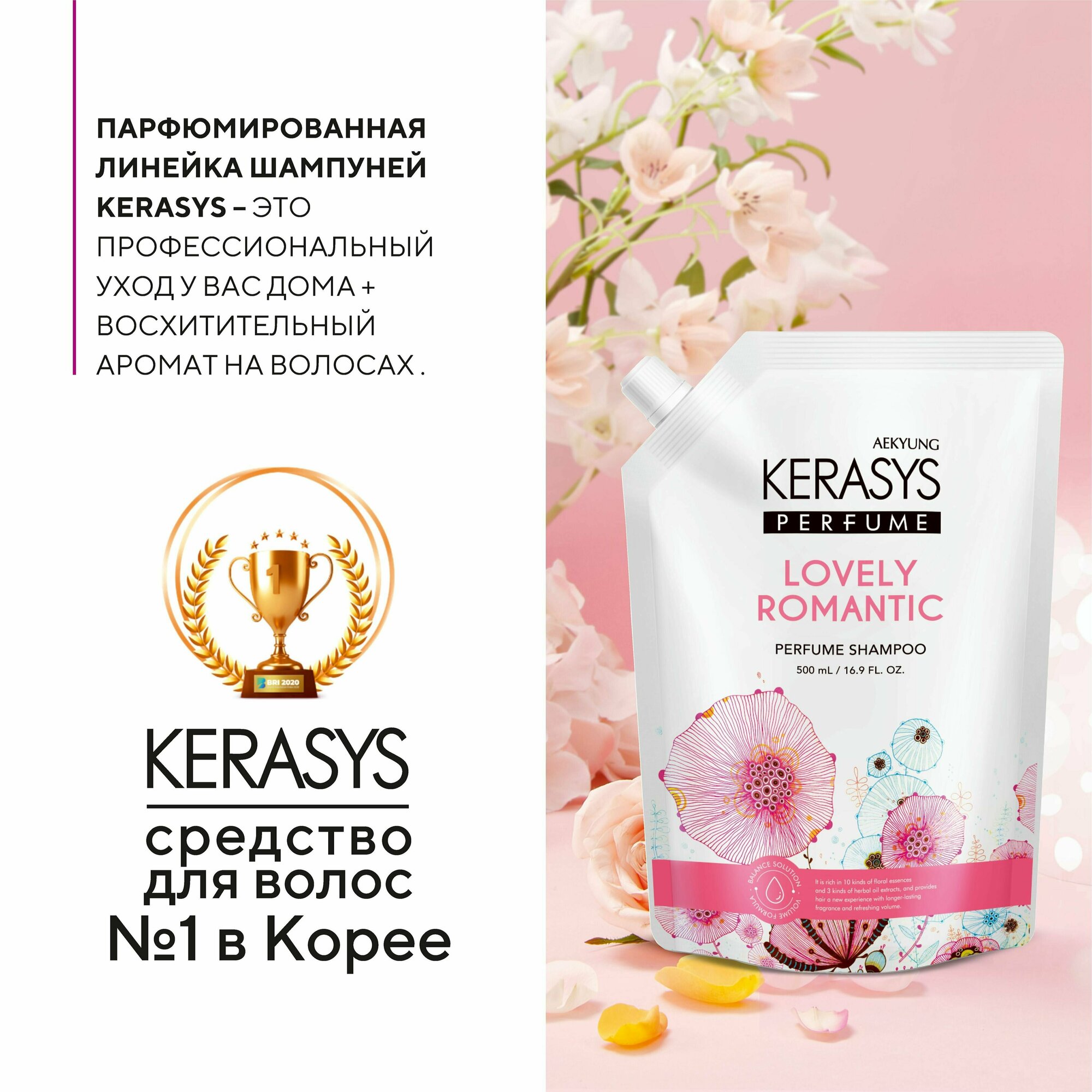 Купить Kerasys Профессиональный Корейский Шампунь для поврежденных волос с секущимися концами "Романтик", бессиликоновый женский увлажняющий