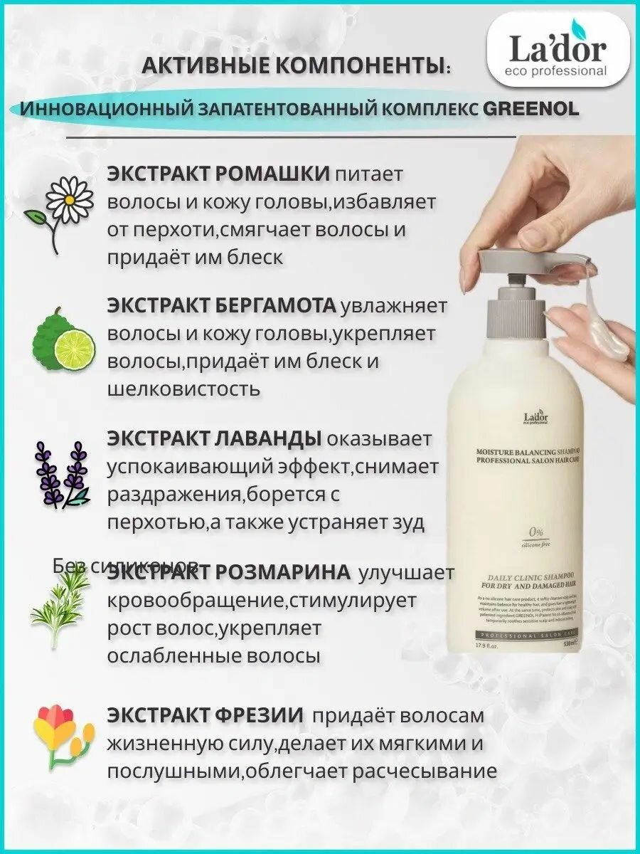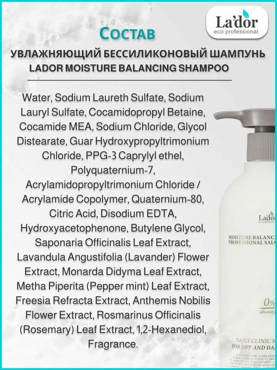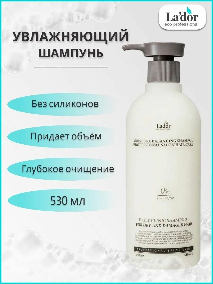 Lador / Увлажняющий безсиликоновый шампунь Lador Moisture Balancing Shampoo, 530ml интересное: