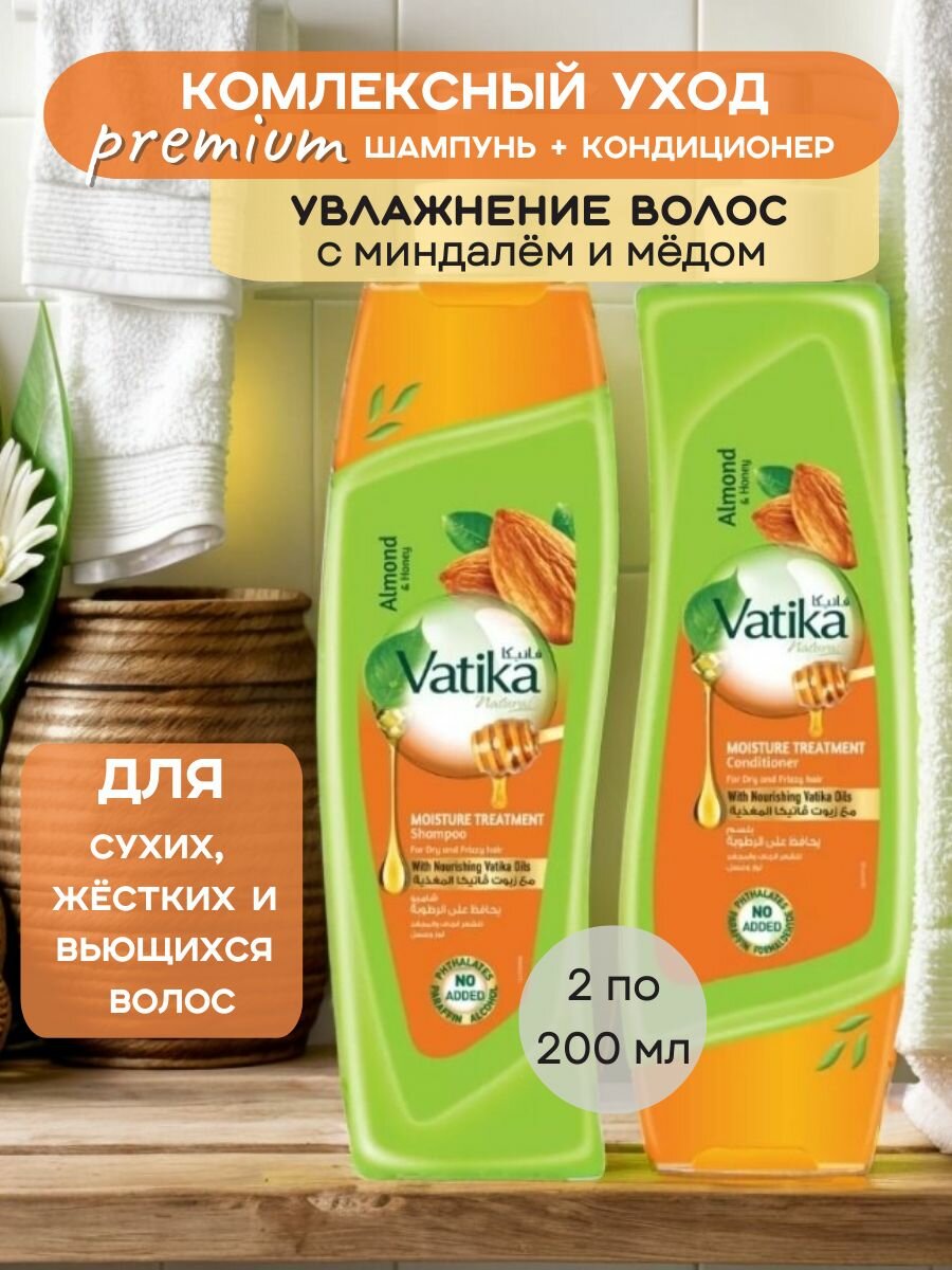 Шампунь и бальзам для волос увлажняющий с миндалем и медом по 200 мл (Moisture Treatment) Vatika интересное: